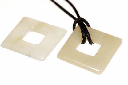 Form: Romb, 28 mm storlek, passar perfekt för att framhäva žadeitens naturliga skönhet och harmoni.