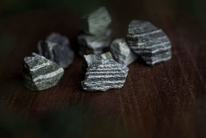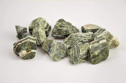 Upptäck den naturliga, obehandlade mineralen känd som "gröna silverögat" eller "zelenit". Denna unika sten kännetecknas av en djupgrön färg som uppstår på grund av vissa mineraler, såsom krom, i dess sammansättning. På grund av sin estetiska skönhet och metafysiska egenskaper förknippas den ofta med skydd och jordens energi.
