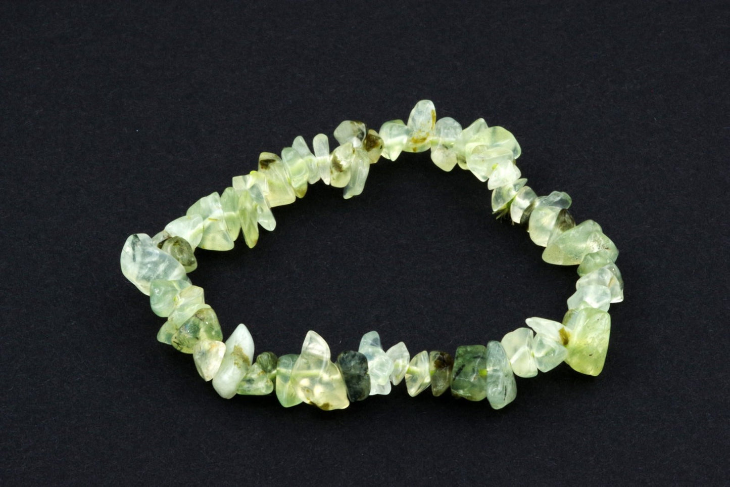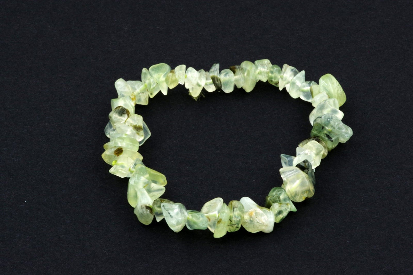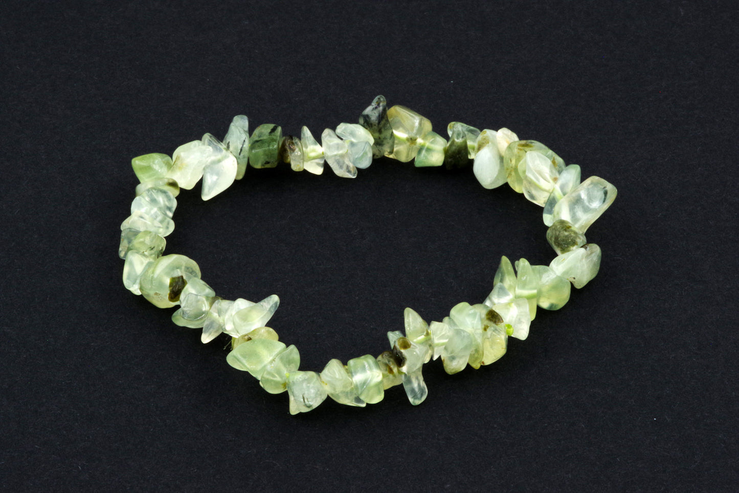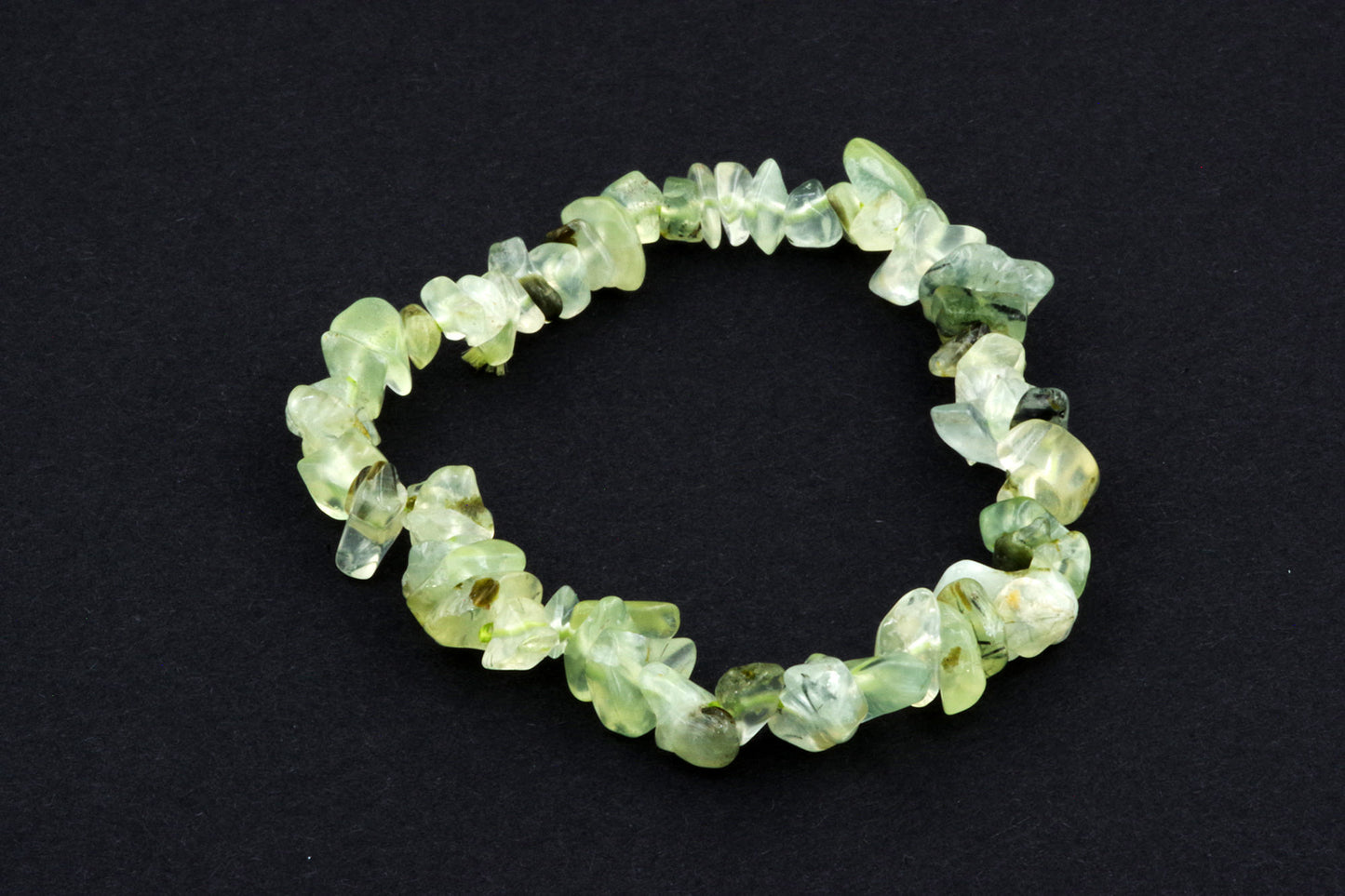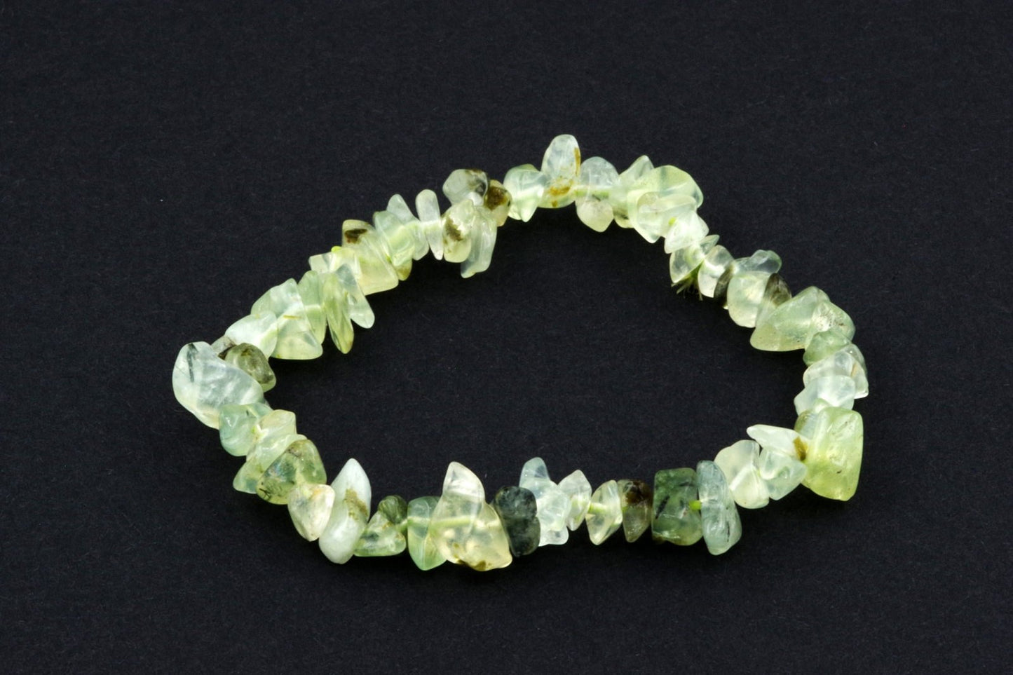 Відкрийте для себе тонкість і гармонію з цим браслетом Prehnito "Čipsiukai". Виготовлений із дрібних, природної форми камінців prehnito, цей браслет вирізняється ніжними зеленими відтінками та грайливим дизайном, що чудово відображає елегантність і енергетичні властивості каменів.