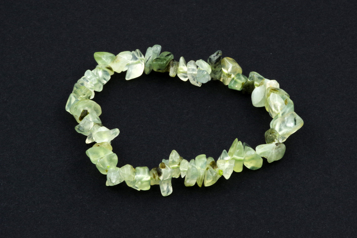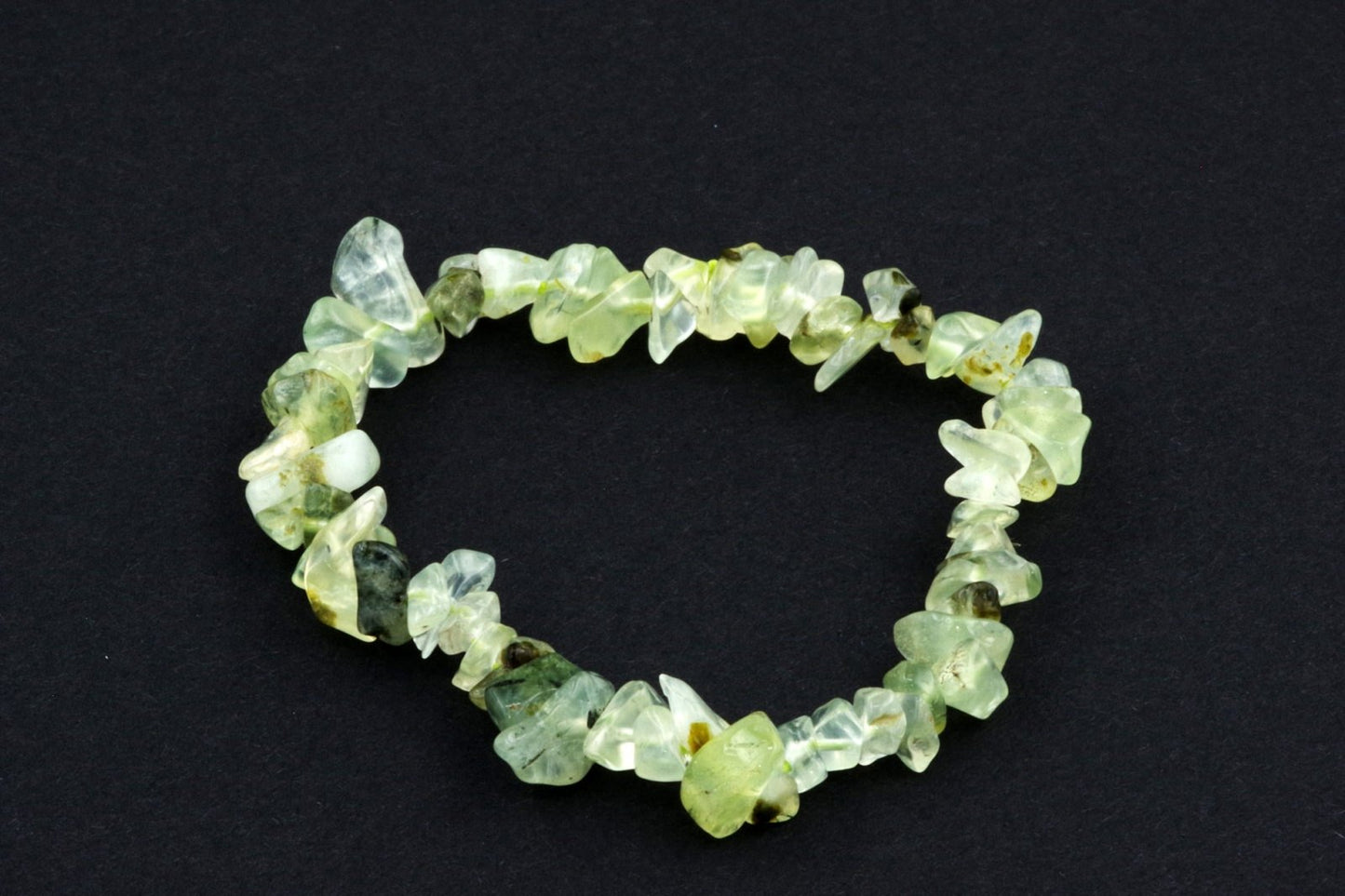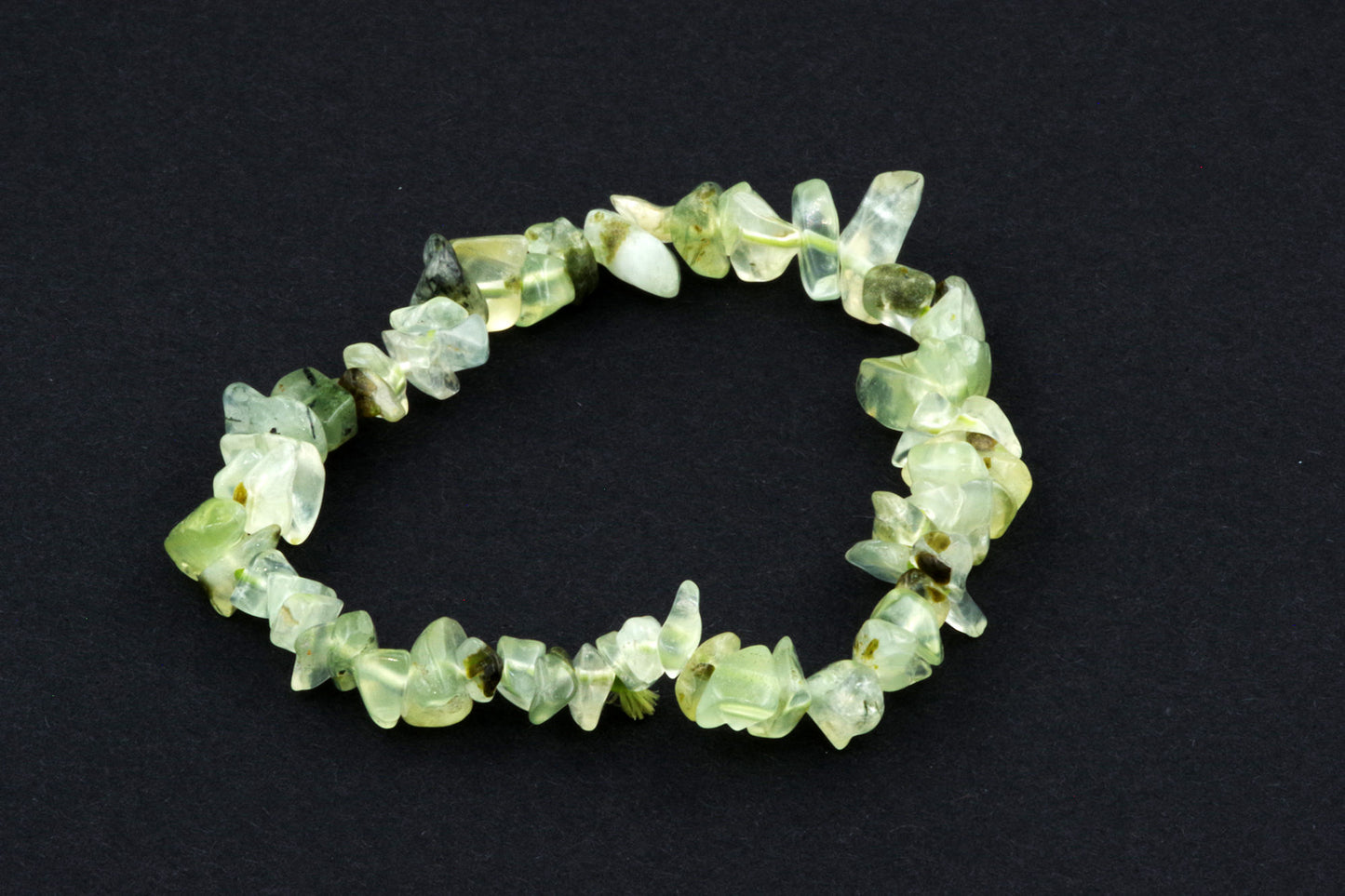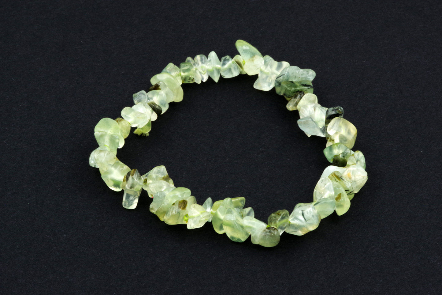 Відкрийте для себе тонкість і гармонію з цим браслетом Prehnito "Čipsiukai". Виготовлений із дрібних, природної форми камінців prehnito, цей браслет вирізняється ніжними зеленими відтінками та грайливим дизайном, що чудово відображає елегантність і енергетичні властивості каменів.