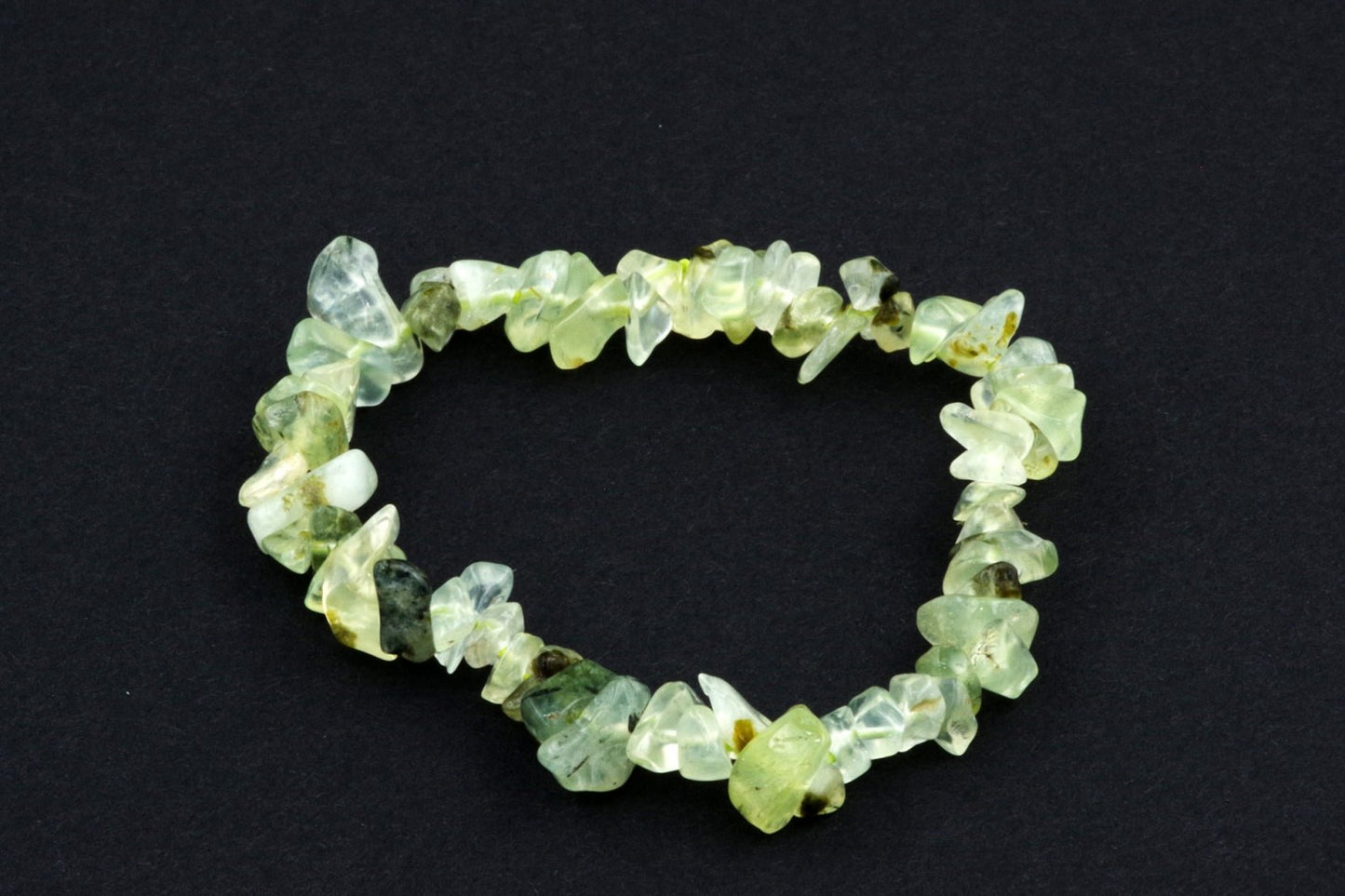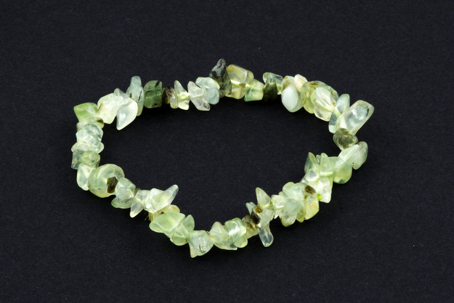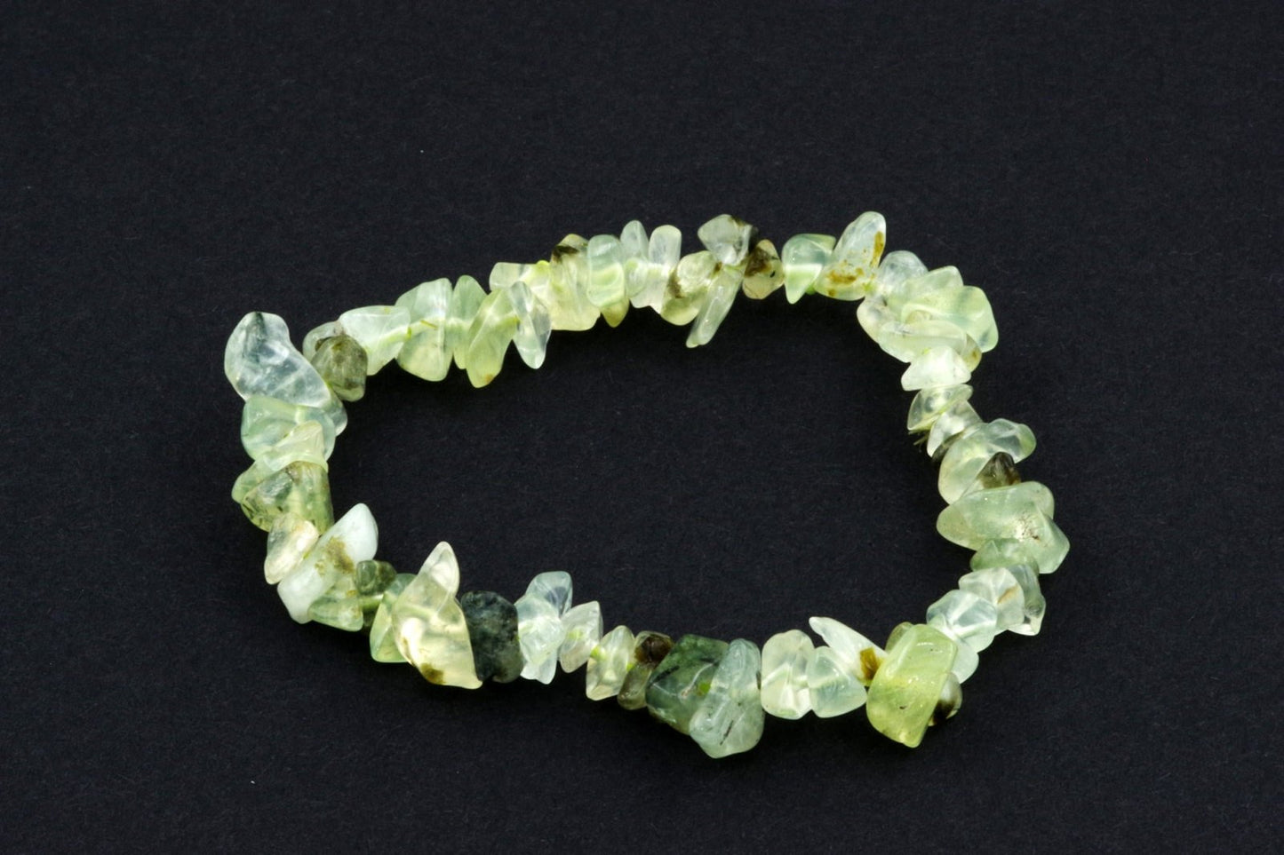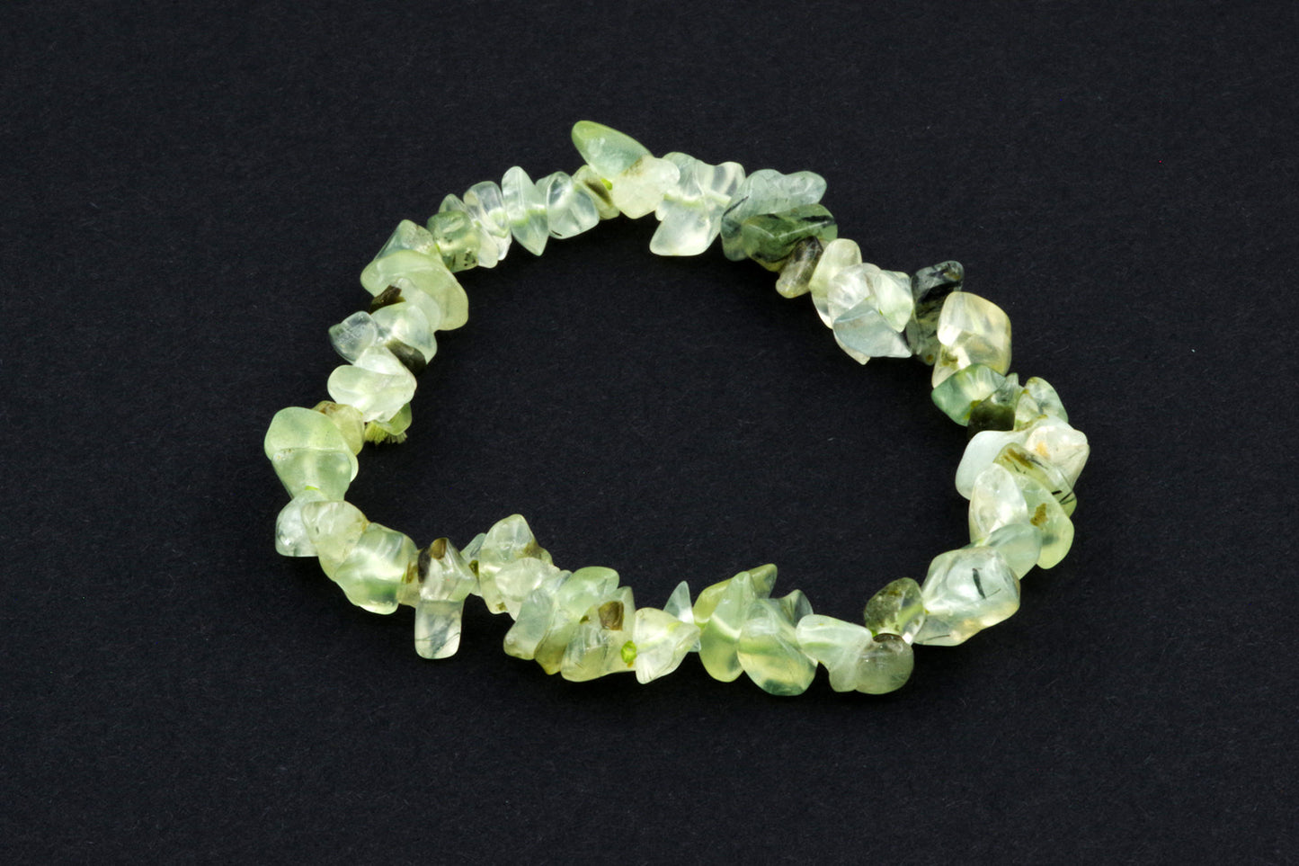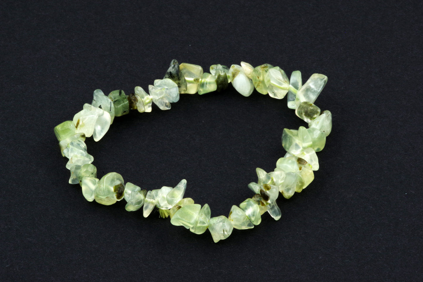 Відкрийте для себе тонкість і гармонію з цим браслетом Prehnito "Čipsiukai". Виготовлений із дрібних, природної форми камінців prehnito, цей браслет вирізняється ніжними зеленими відтінками та грайливим дизайном, що чудово відображає елегантність і енергетичні властивості каменів.
