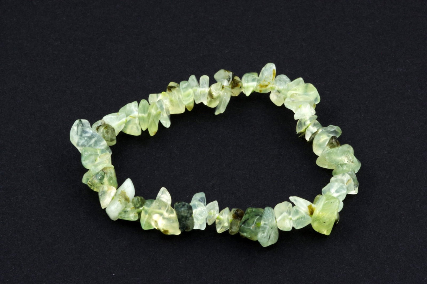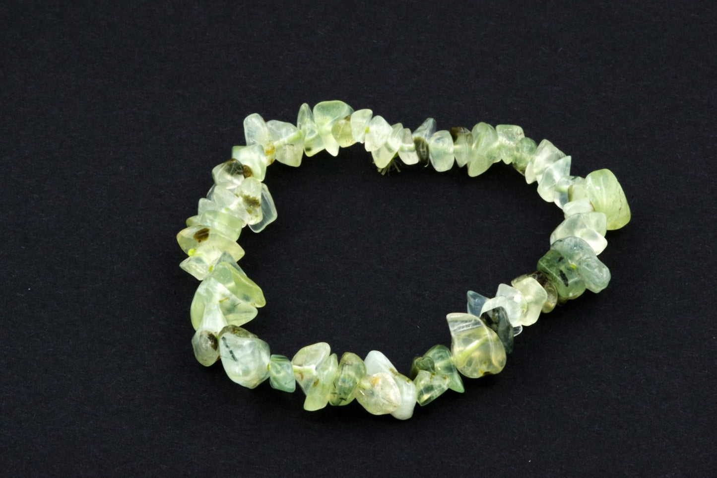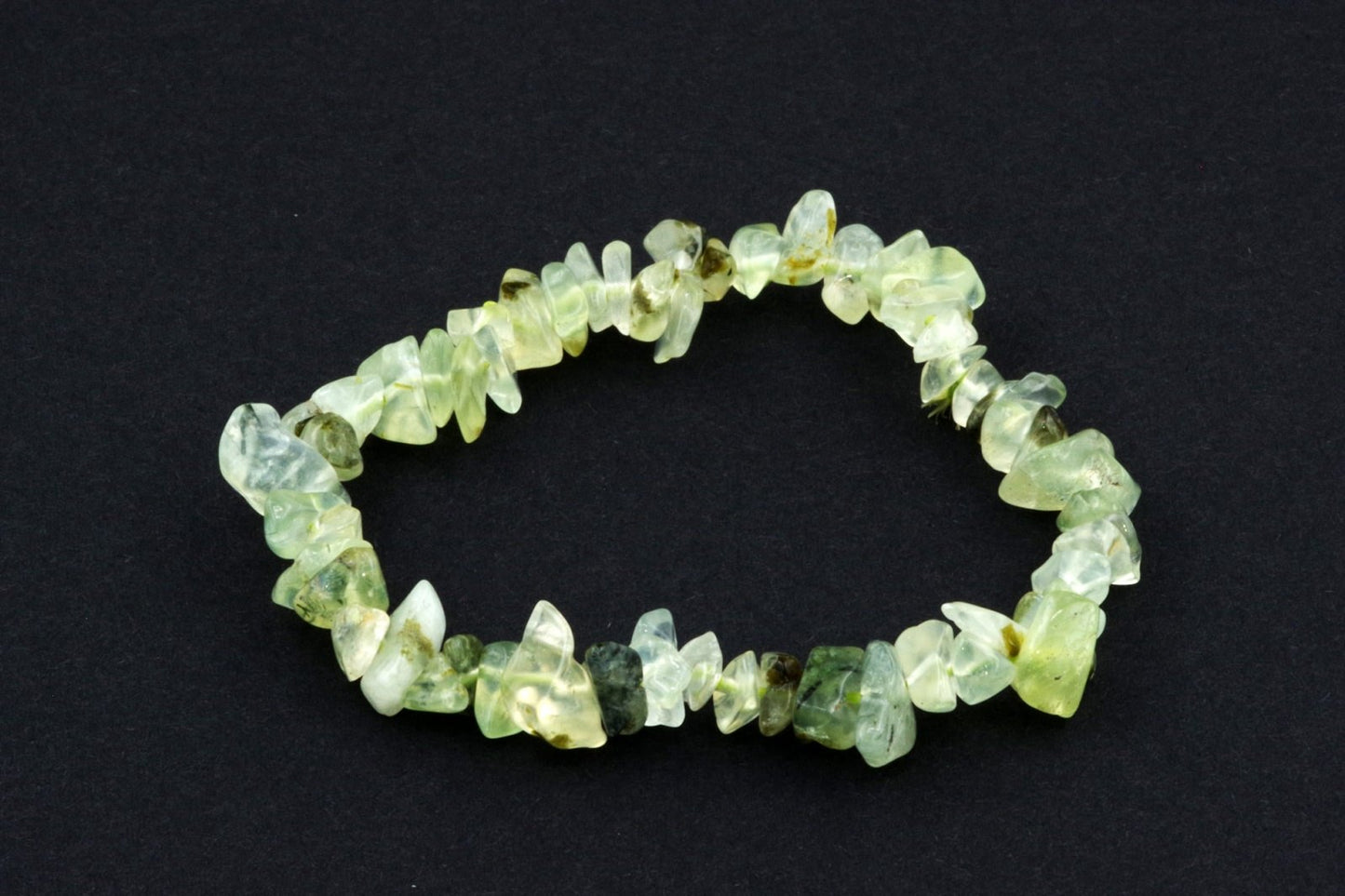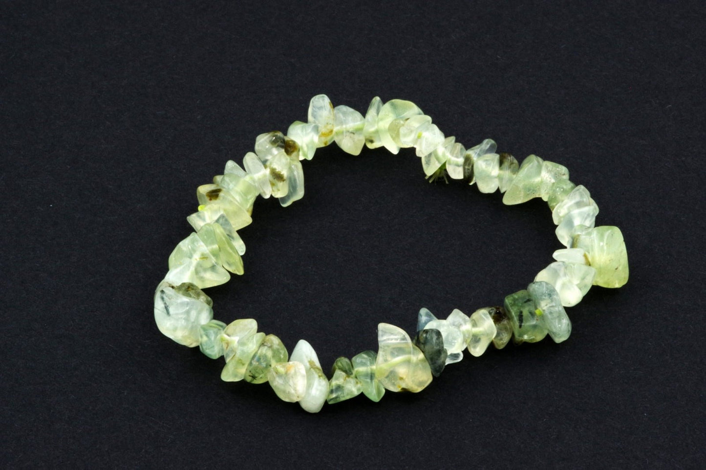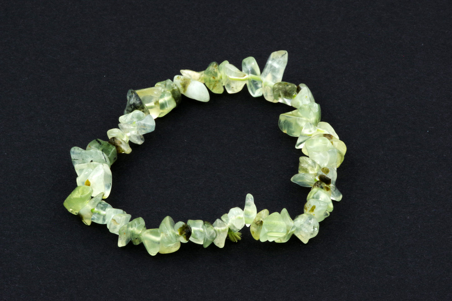 Відкрийте для себе тонкість і гармонію з цим браслетом Prehnito "Čipsiukai". Виготовлений із дрібних, природної форми камінців prehnito, цей браслет вирізняється ніжними зеленими відтінками та грайливим дизайном, що чудово відображає елегантність і енергетичні властивості каменів.