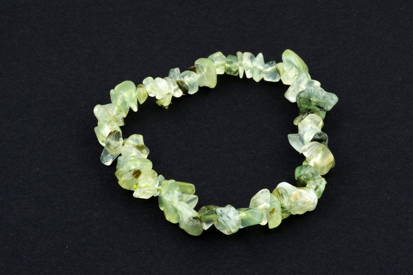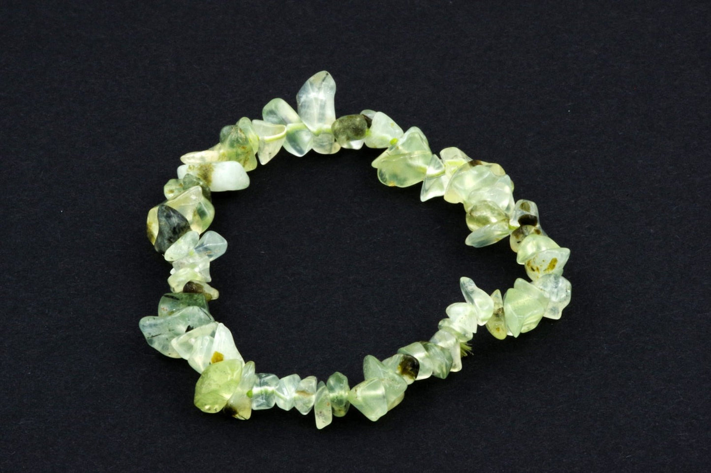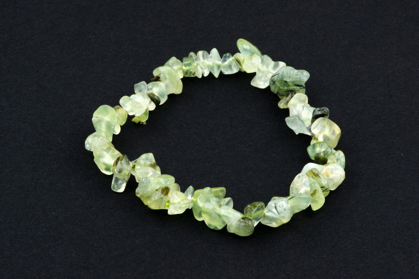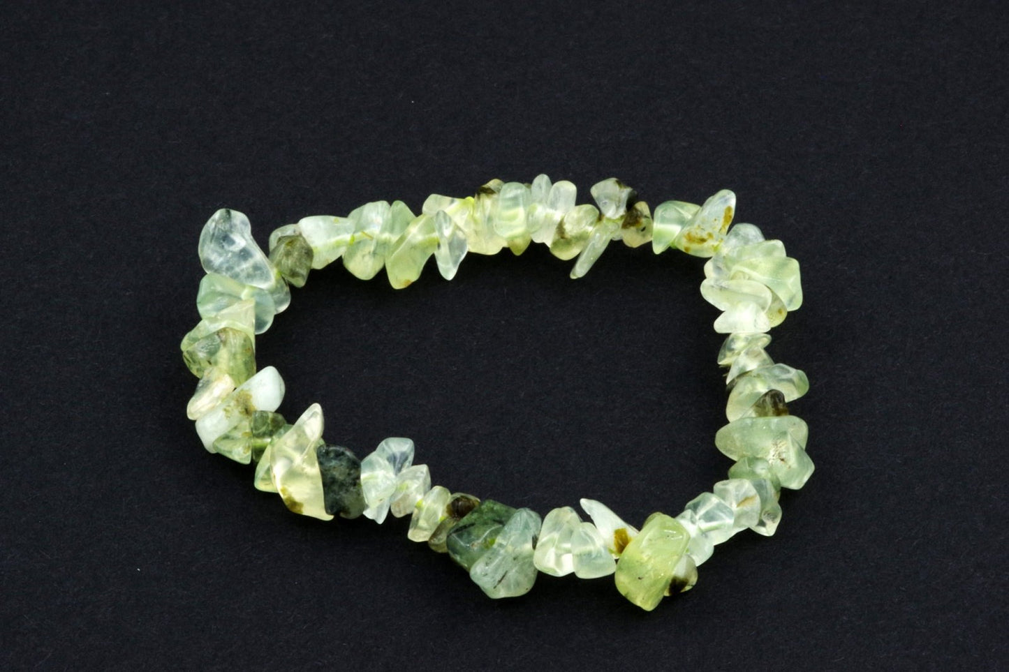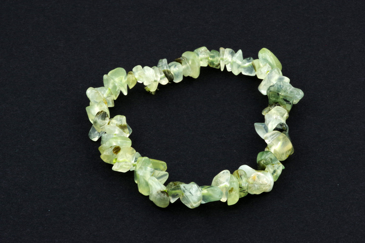 Відкрийте для себе тонкість і гармонію з цим браслетом Prehnito "Čipsiukai". Виготовлений із дрібних, природної форми камінців prehnito, цей браслет вирізняється ніжними зеленими відтінками та грайливим дизайном, що чудово відображає елегантність і енергетичні властивості каменів.