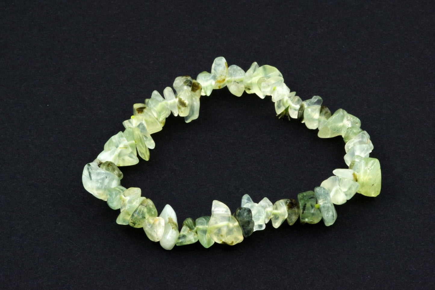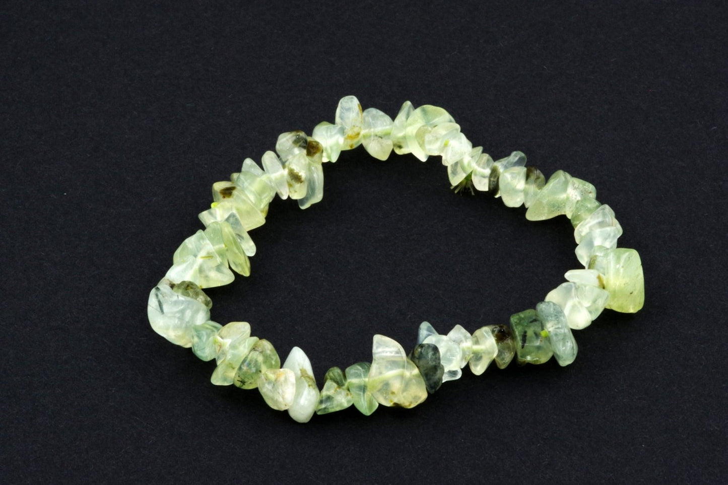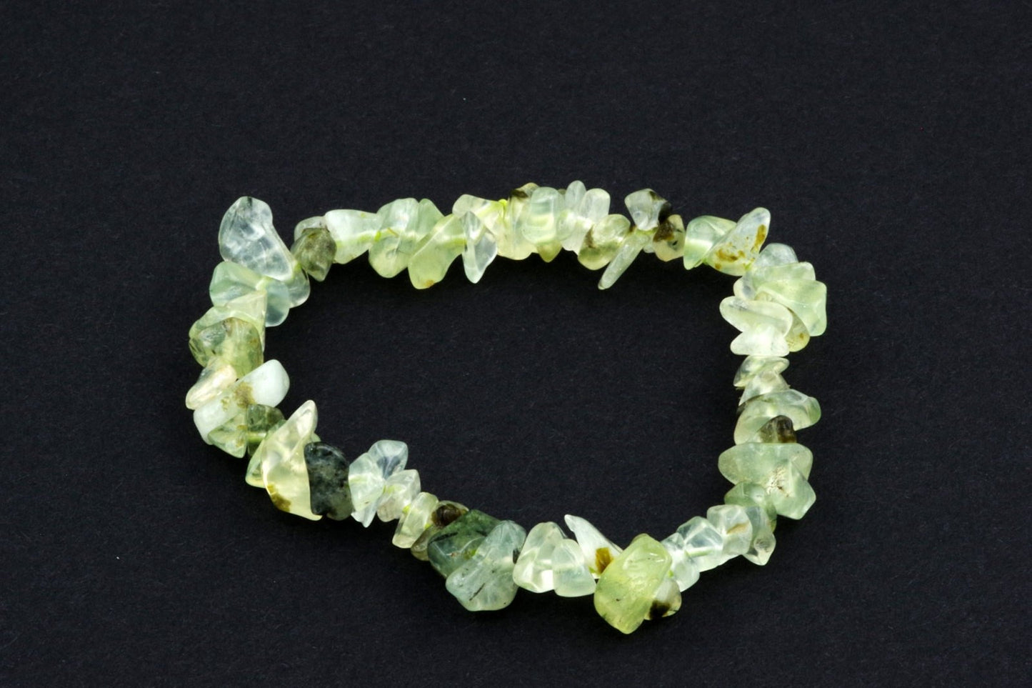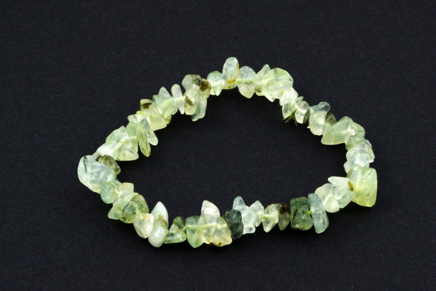 Відкрийте для себе тонкість і гармонію з цим браслетом Prehnito "Čipsiukai". Виготовлений із дрібних, природної форми камінців prehnito, цей браслет вирізняється ніжними зеленими відтінками та грайливим дизайном, що чудово відображає елегантність і енергетичні властивості каменів.