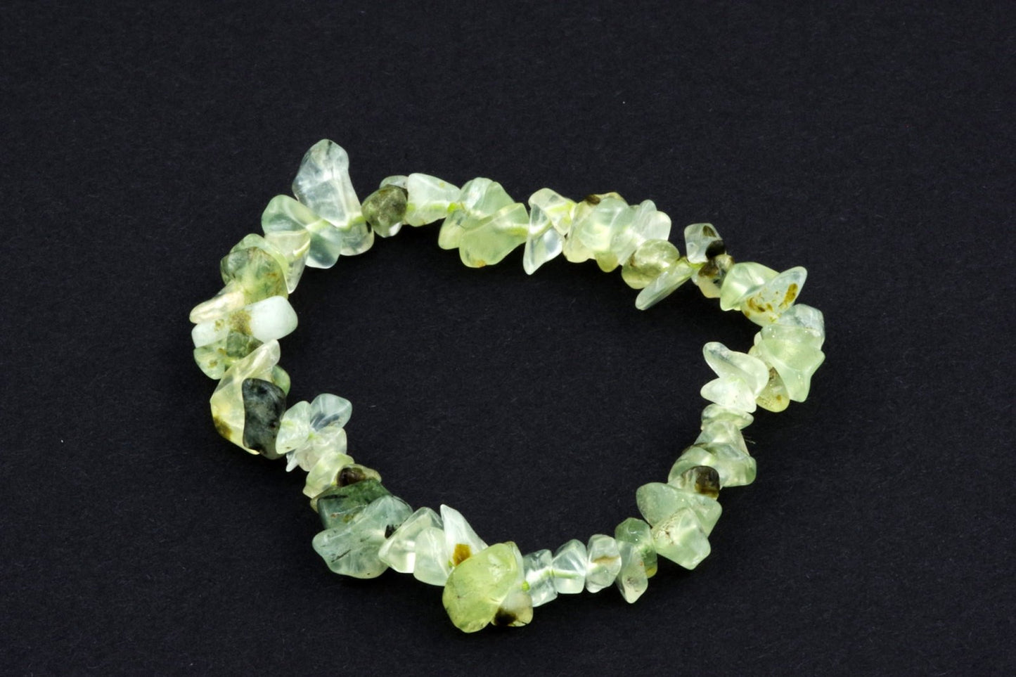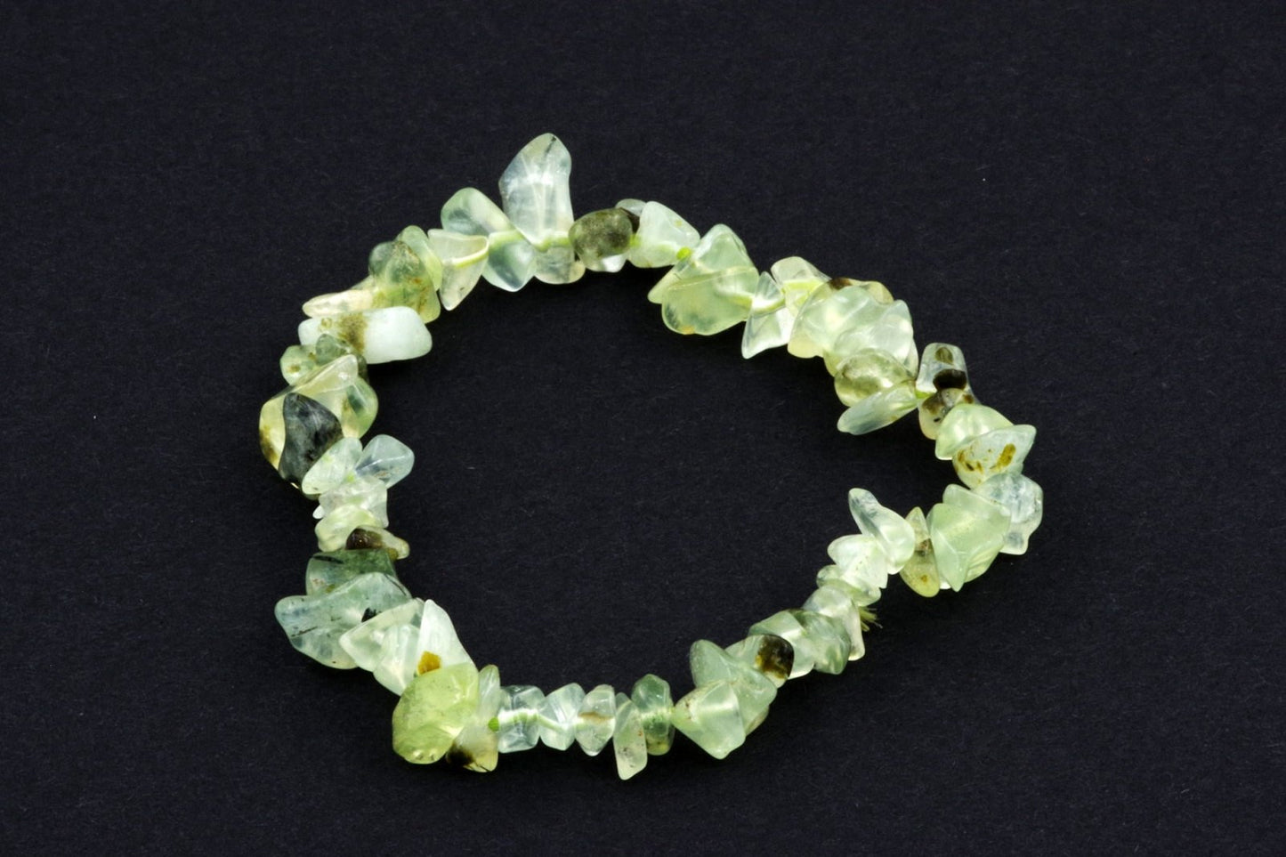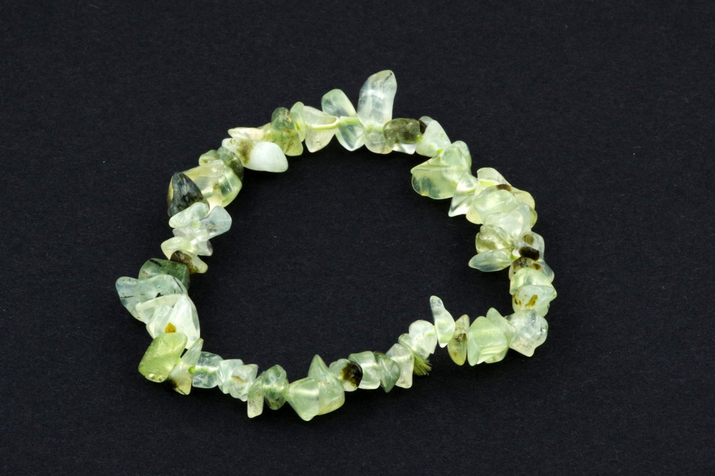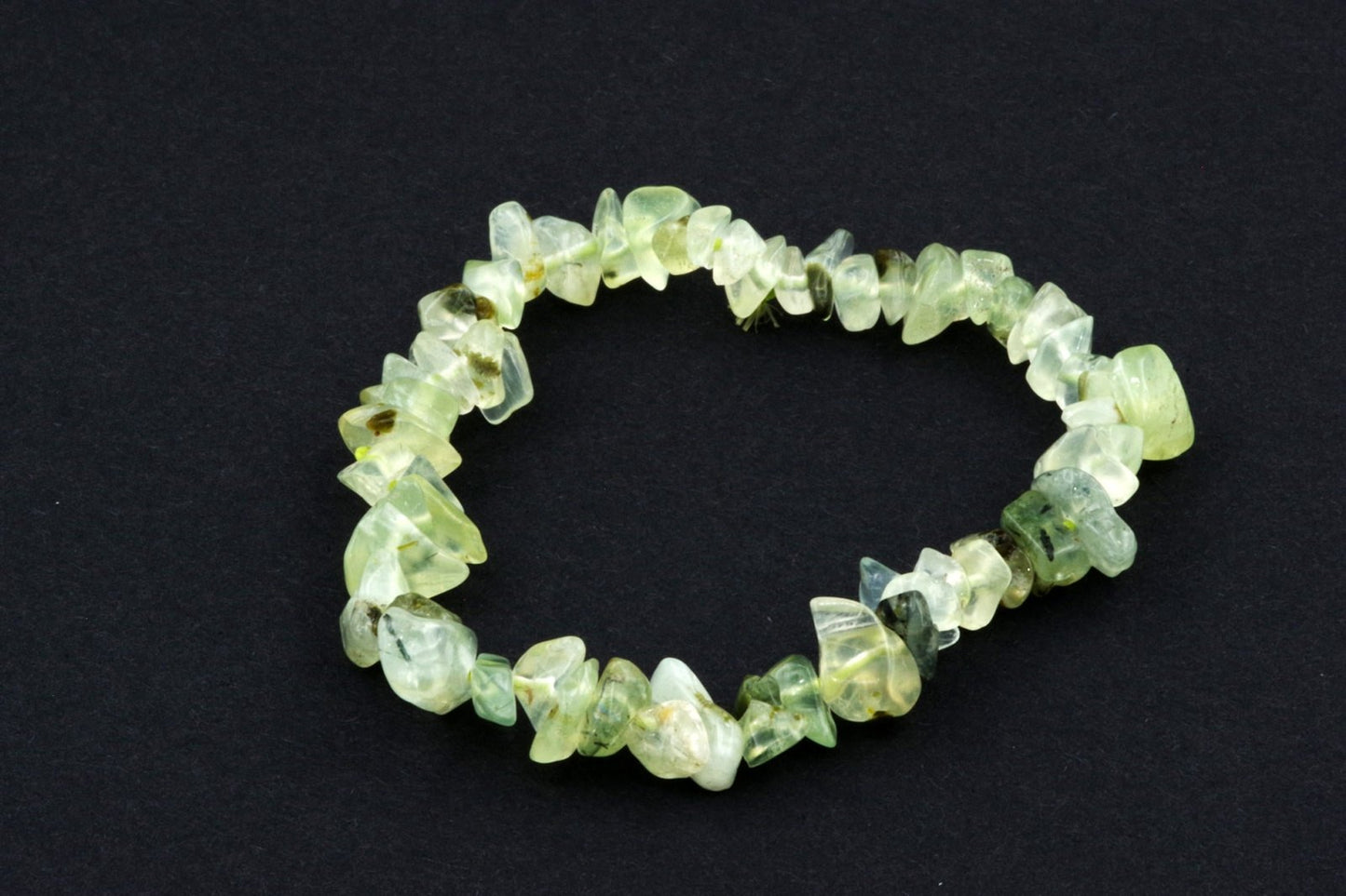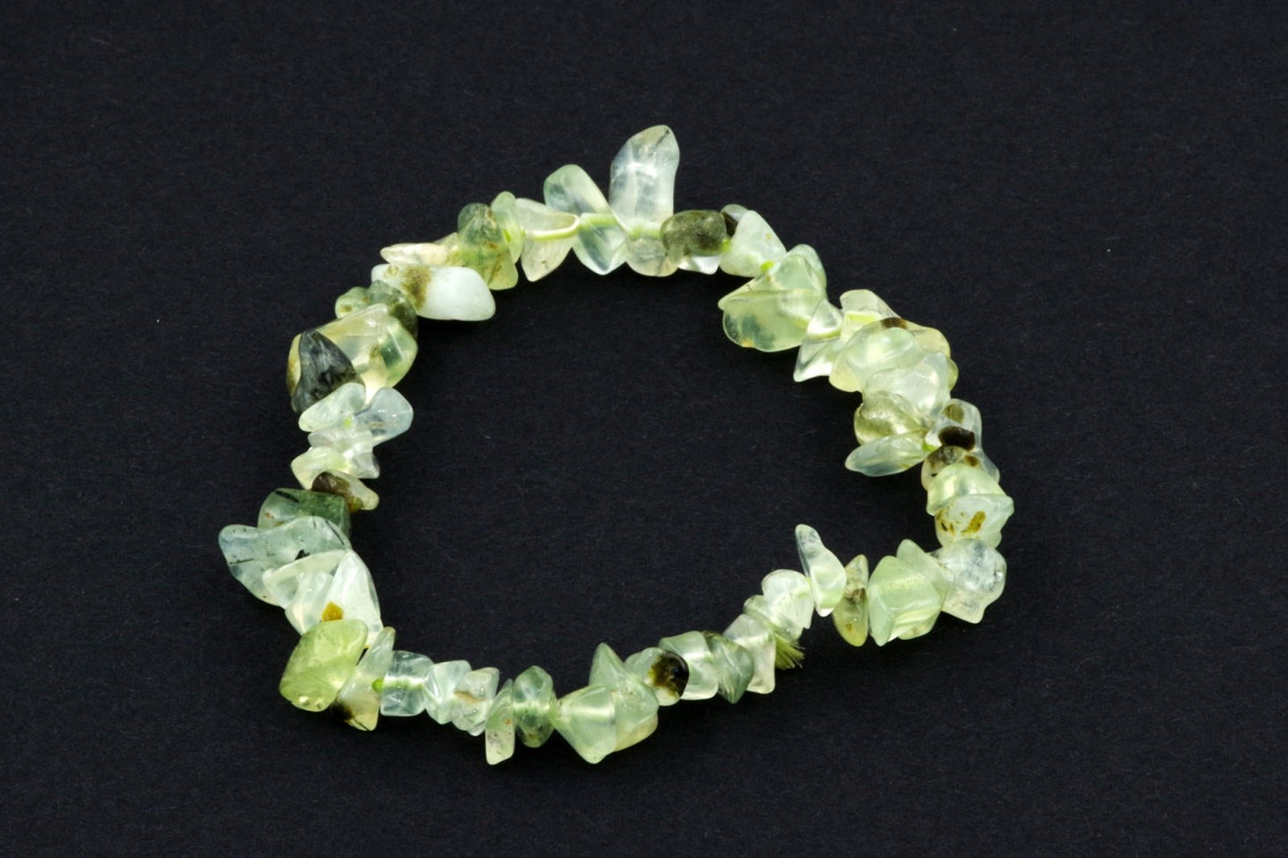 Відкрийте для себе тонкість і гармонію з цим браслетом Prehnito "Čipsiukai". Виготовлений із дрібних, природної форми камінців prehnito, цей браслет вирізняється ніжними зеленими відтінками та грайливим дизайном, що чудово відображає елегантність і енергетичні властивості каменів.