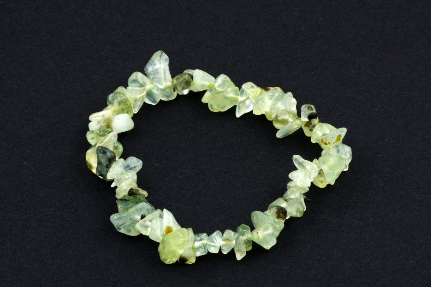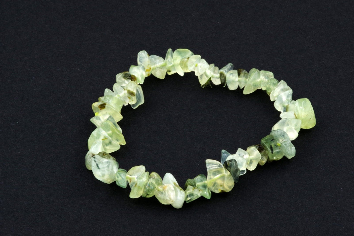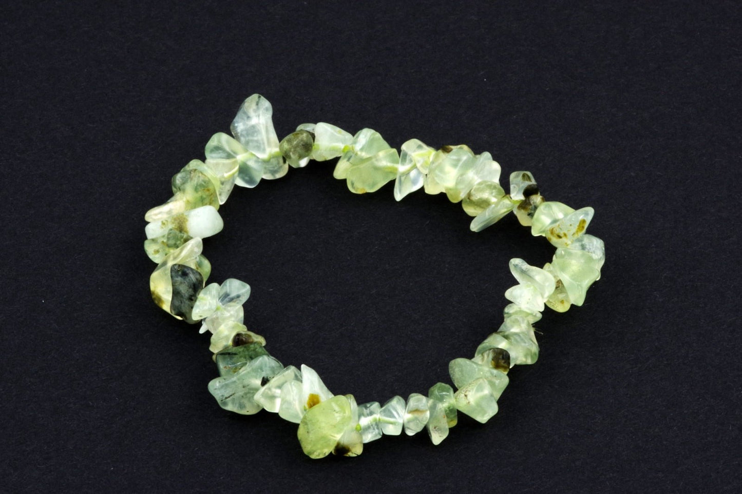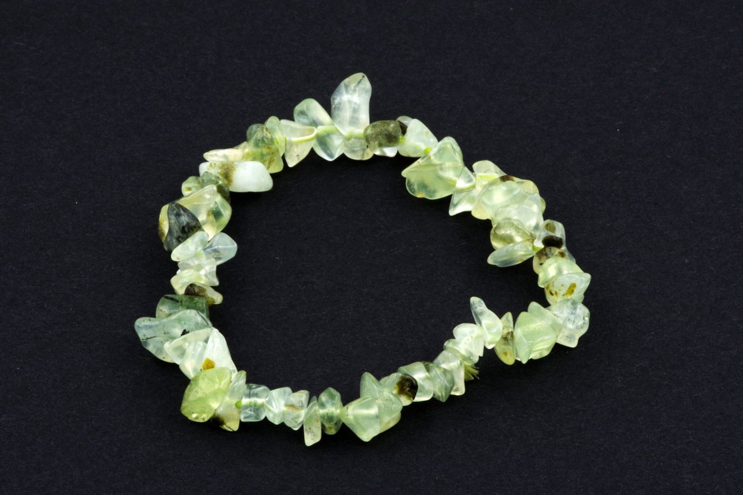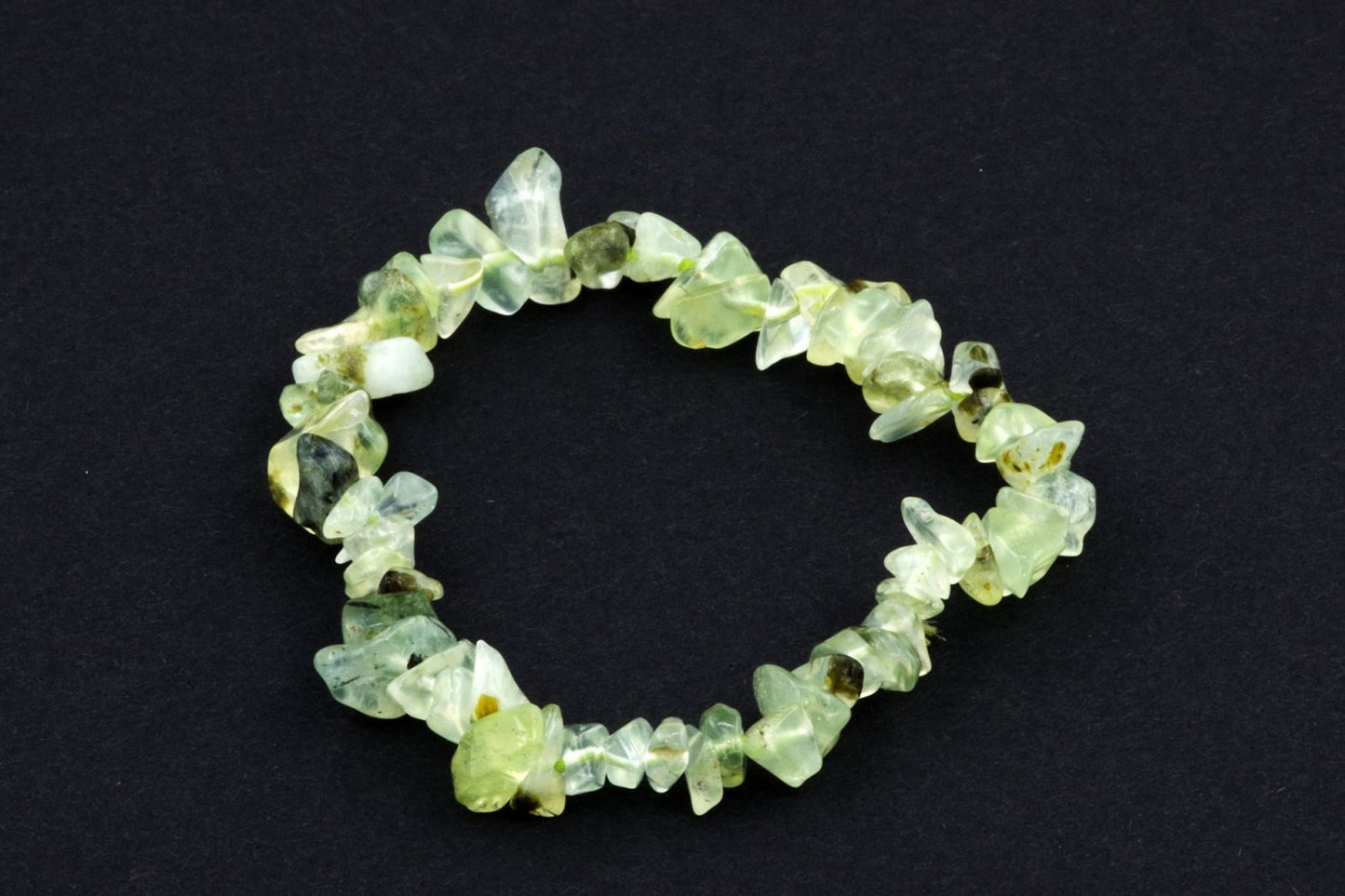 Відкрийте для себе тонкість і гармонію з цим браслетом Prehnito "Čipsiukai". Виготовлений із дрібних, природної форми камінців prehnito, цей браслет вирізняється ніжними зеленими відтінками та грайливим дизайном, що чудово відображає елегантність і енергетичні властивості каменів.