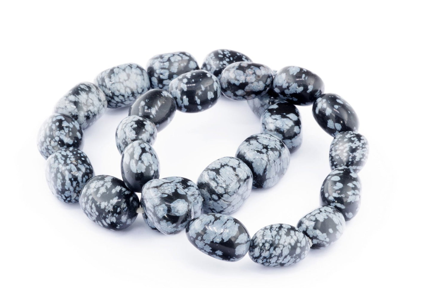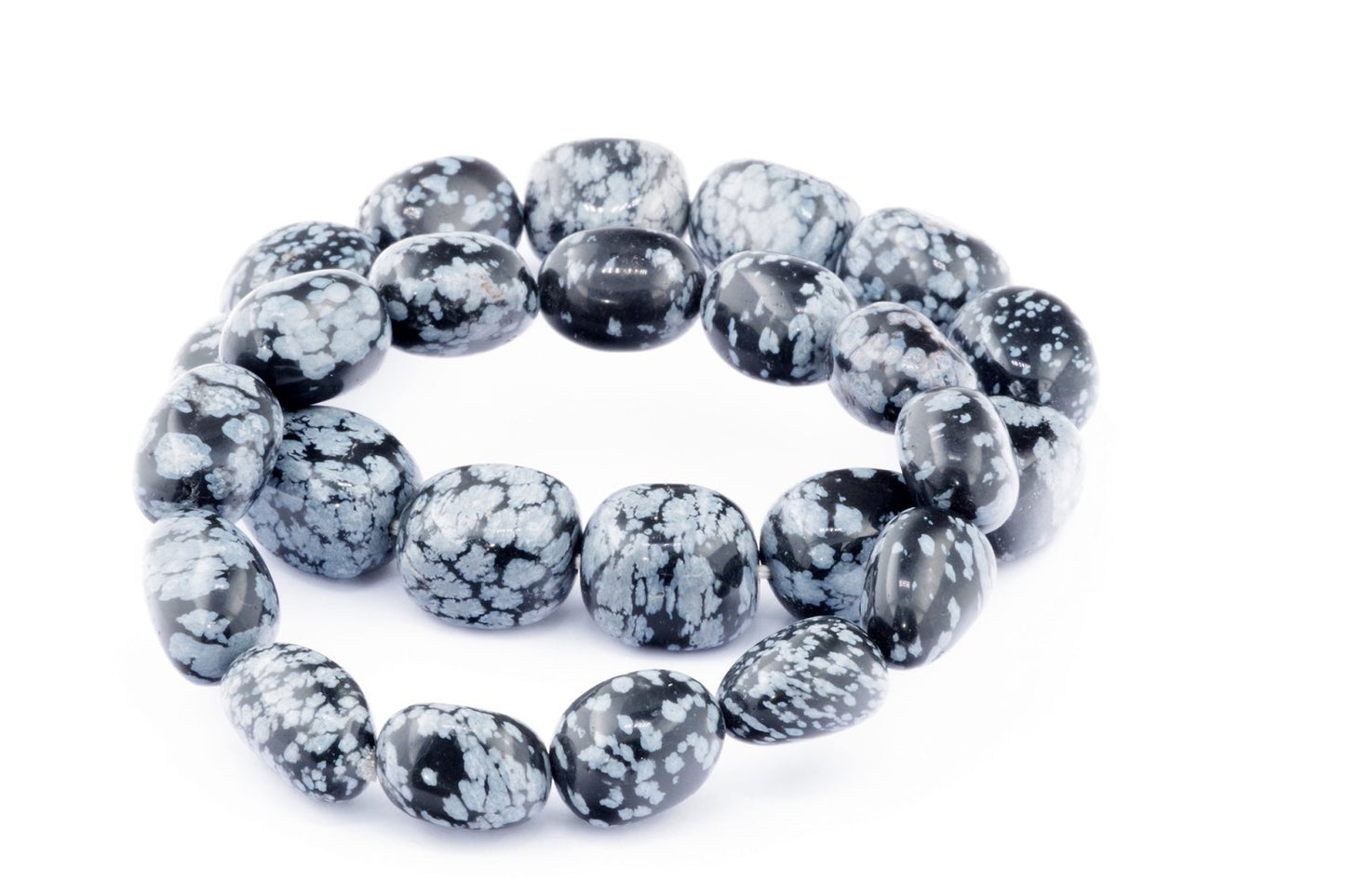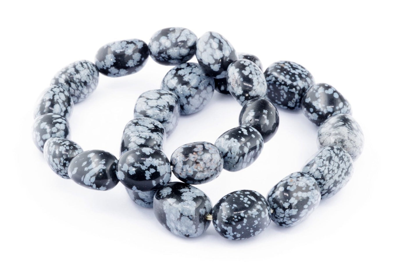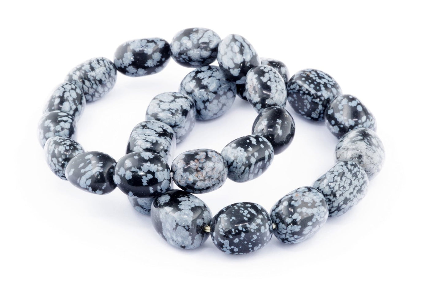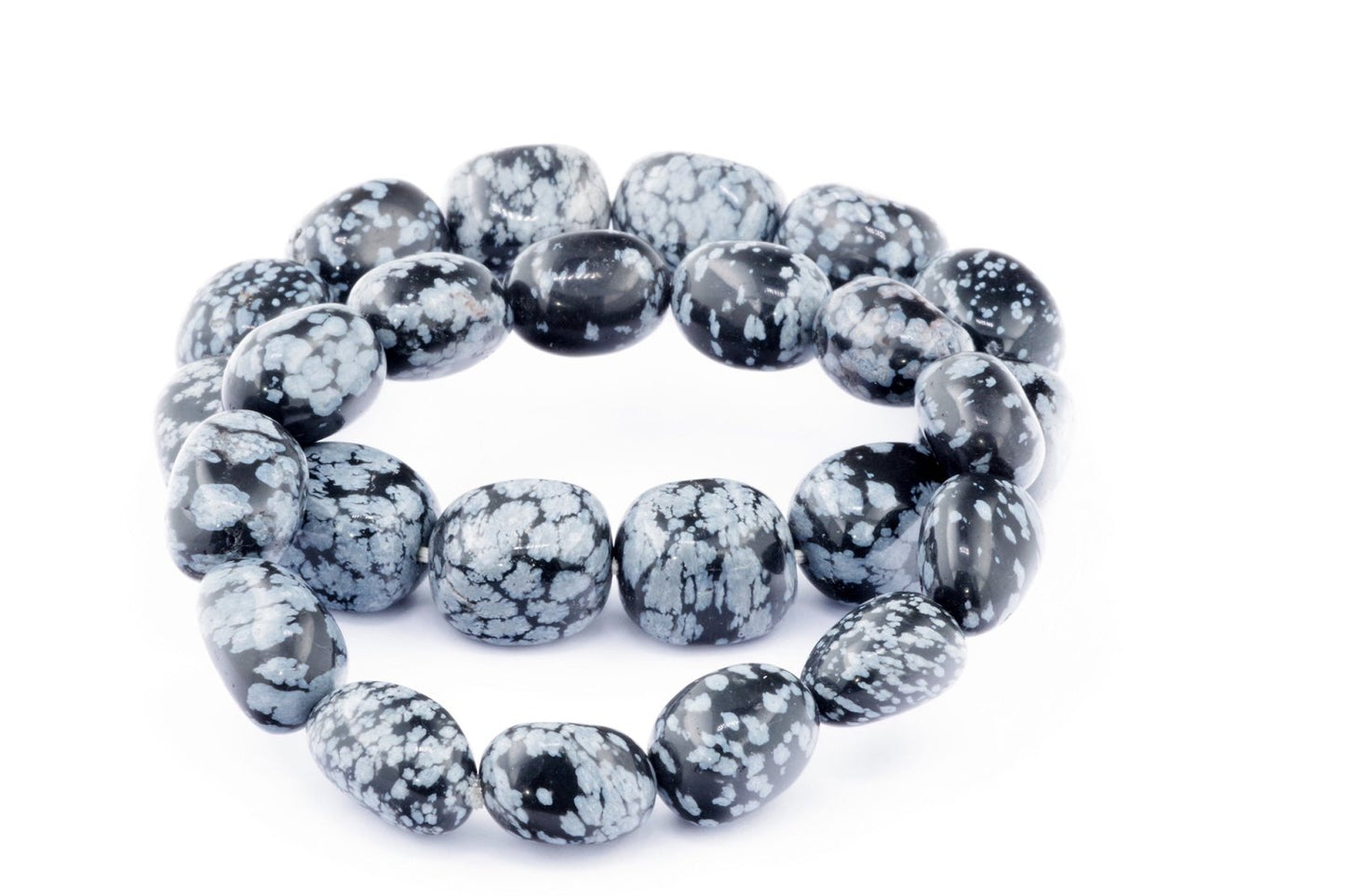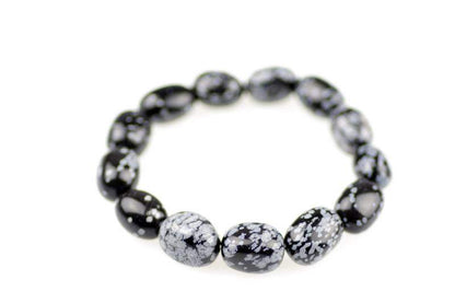 Відкрийте для себе стильний та містичний аксесуар, який вирізняється насиченими чорними кольорами з білими, що нагадують сніг, включеннями. Виготовлений із необроблених каменів снігового обсидіану природної форми, цей браслет є чудовим вибором для тих, хто цінує потужні енергії, захист та любить виразні, але витончені аксесуари.