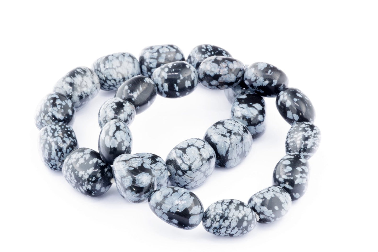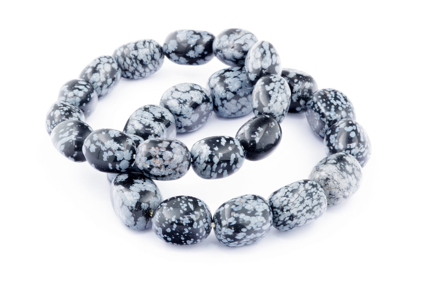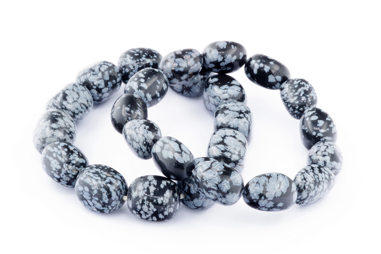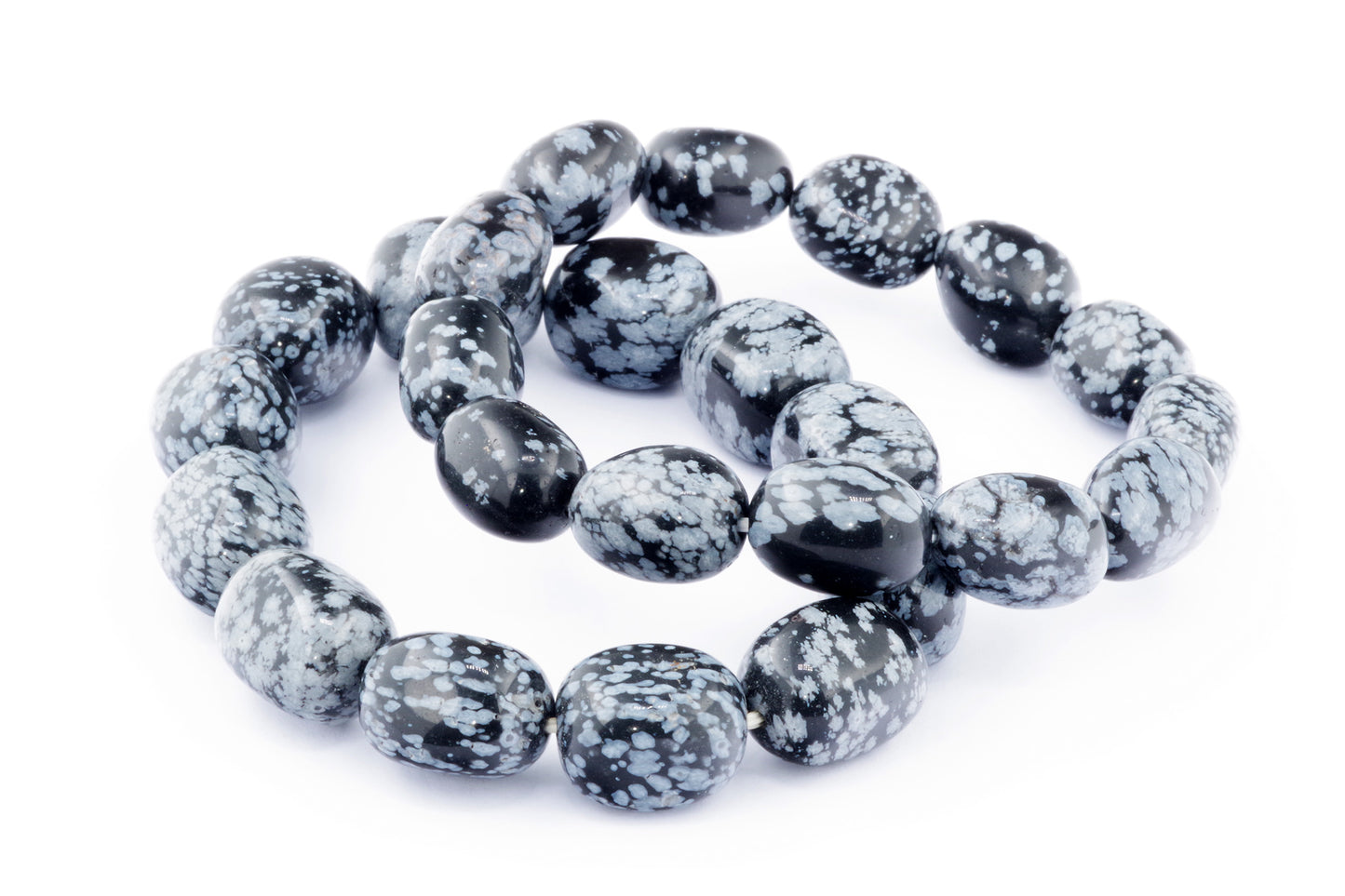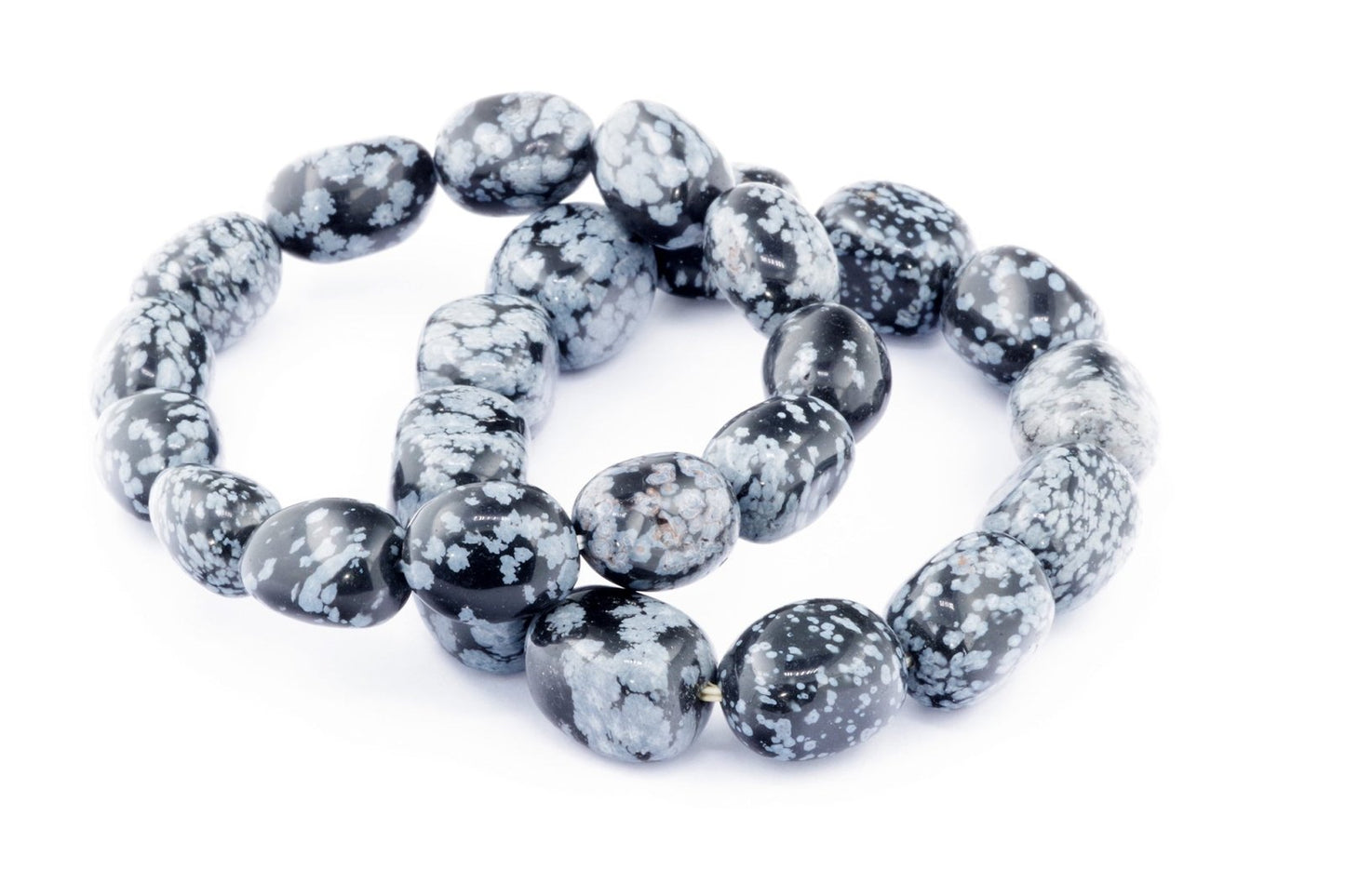 Відкрийте для себе стильний та містичний аксесуар, який вирізняється насиченими чорними кольорами з білими, що нагадують сніг, включеннями. Виготовлений із необроблених каменів снігового обсидіану природної форми, цей браслет є чудовим вибором для тих, хто цінує потужні енергії, захист та любить виразні, але витончені аксесуари.