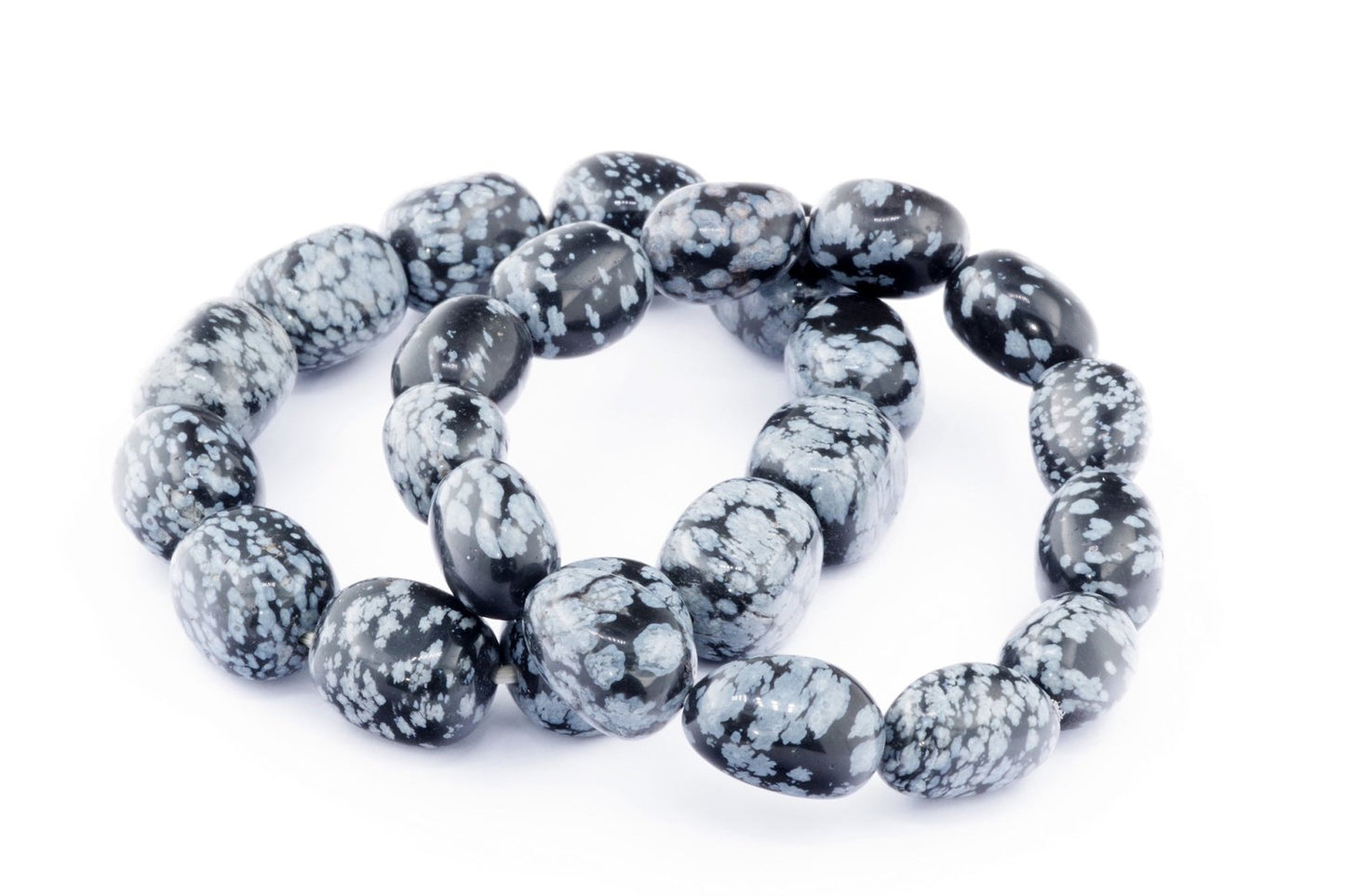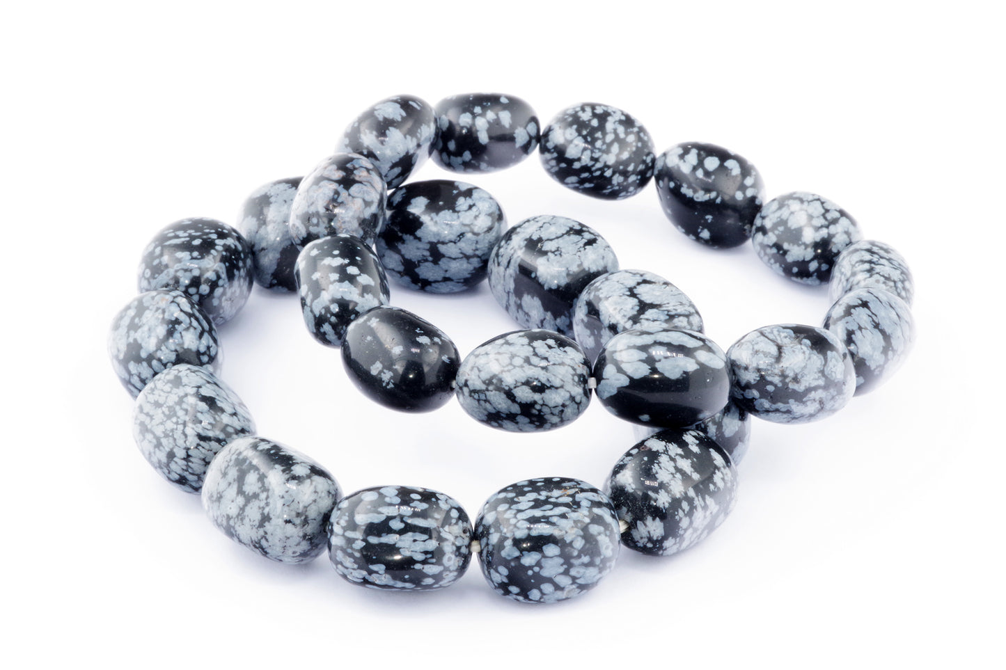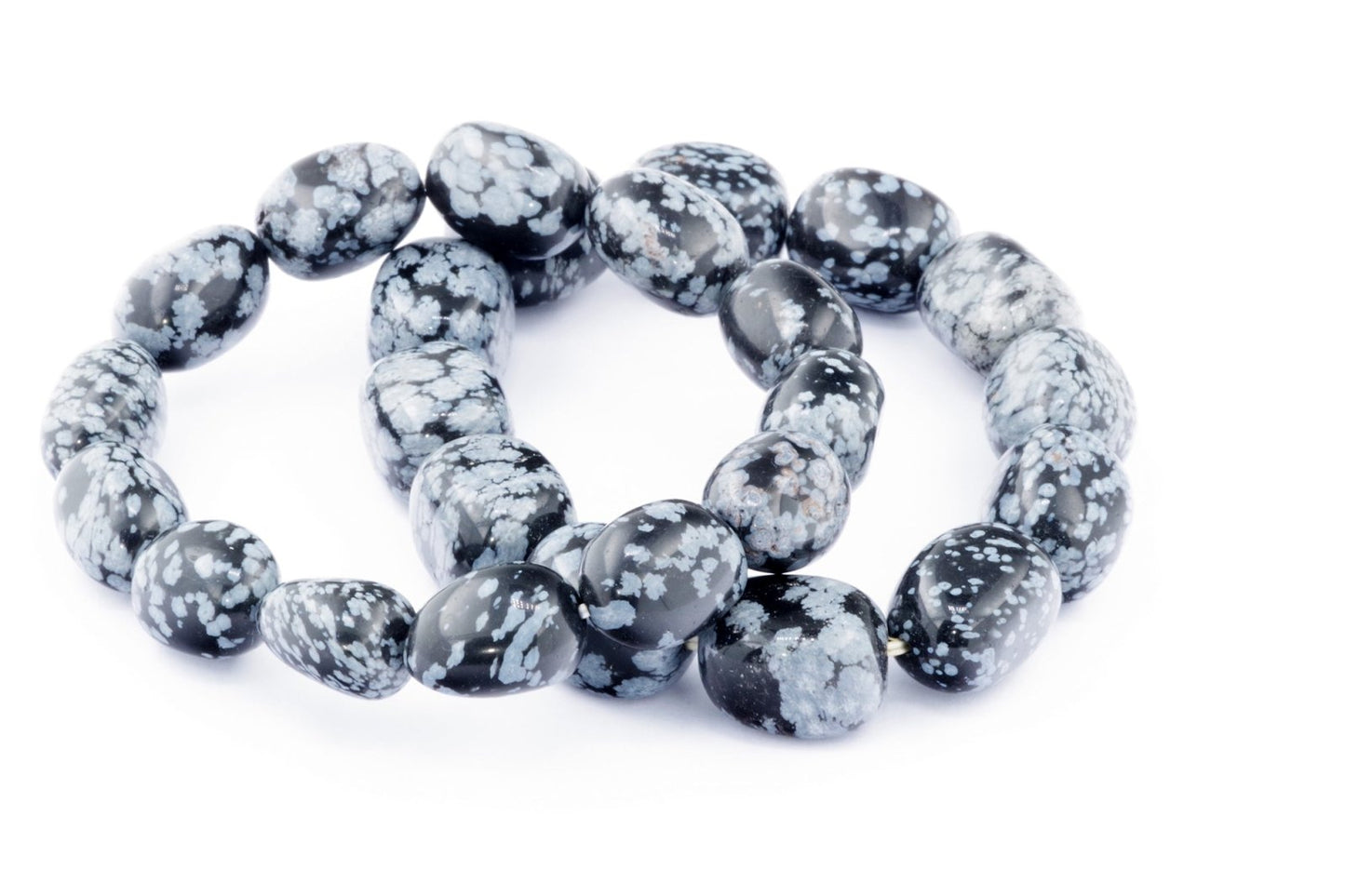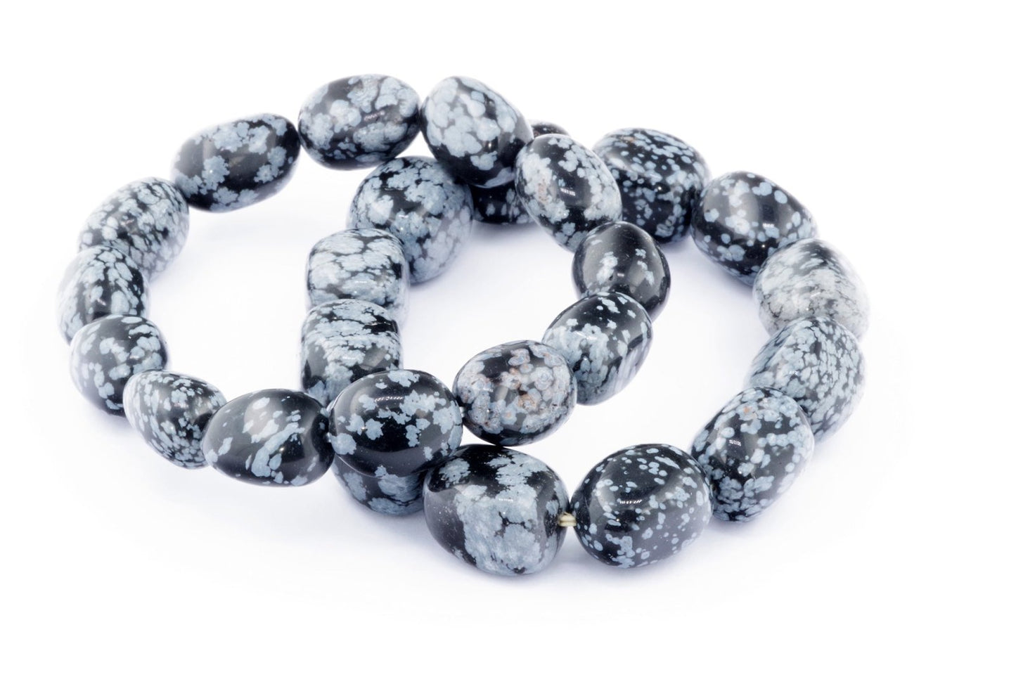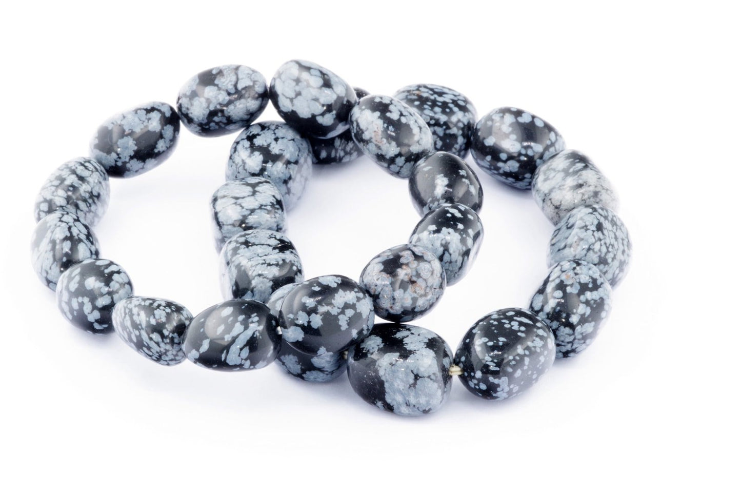 Відкрийте для себе стильний та містичний аксесуар, який вирізняється насиченими чорними кольорами з білими, що нагадують сніг, включеннями. Виготовлений із необроблених каменів снігового обсидіану природної форми, цей браслет є чудовим вибором для тих, хто цінує потужні енергії, захист та любить виразні, але витончені аксесуари.