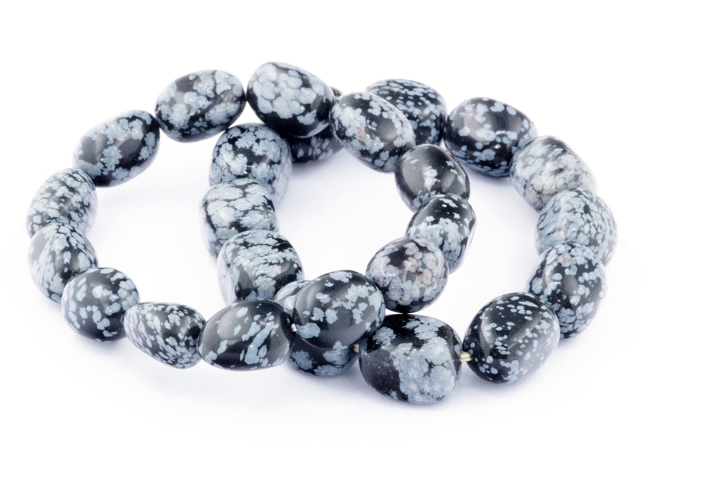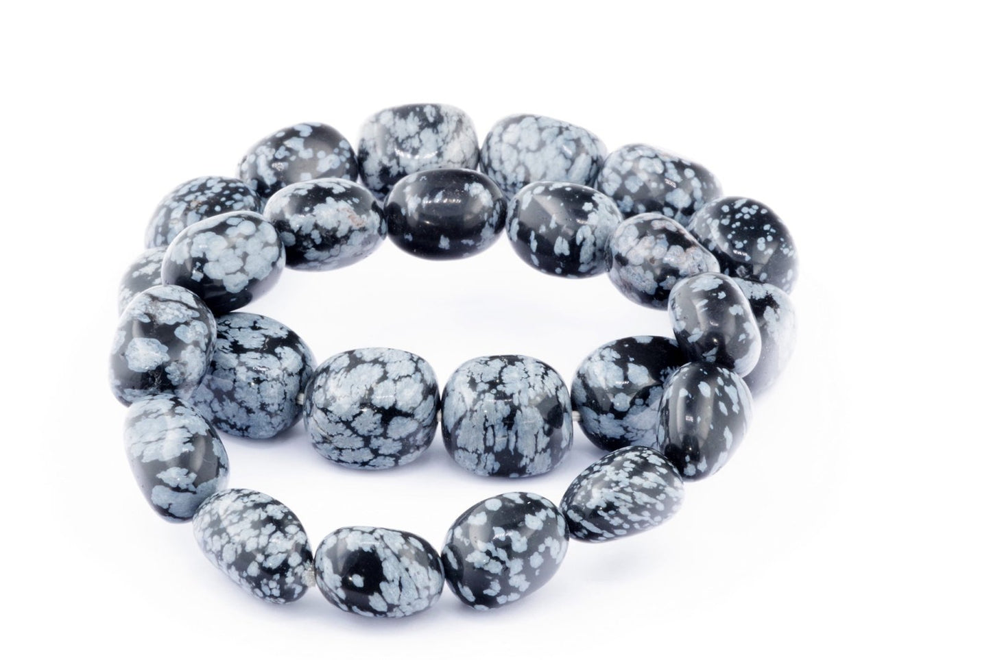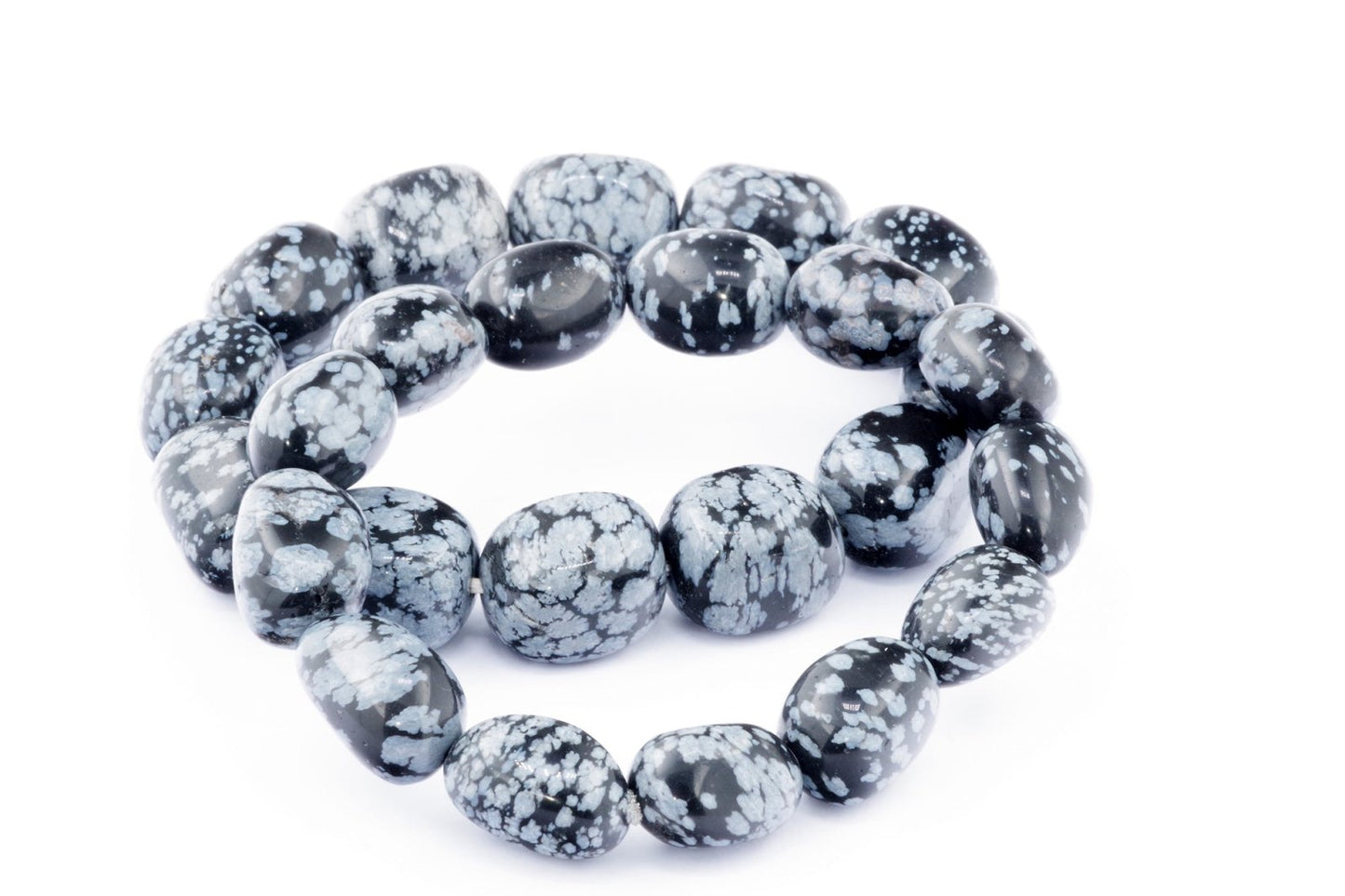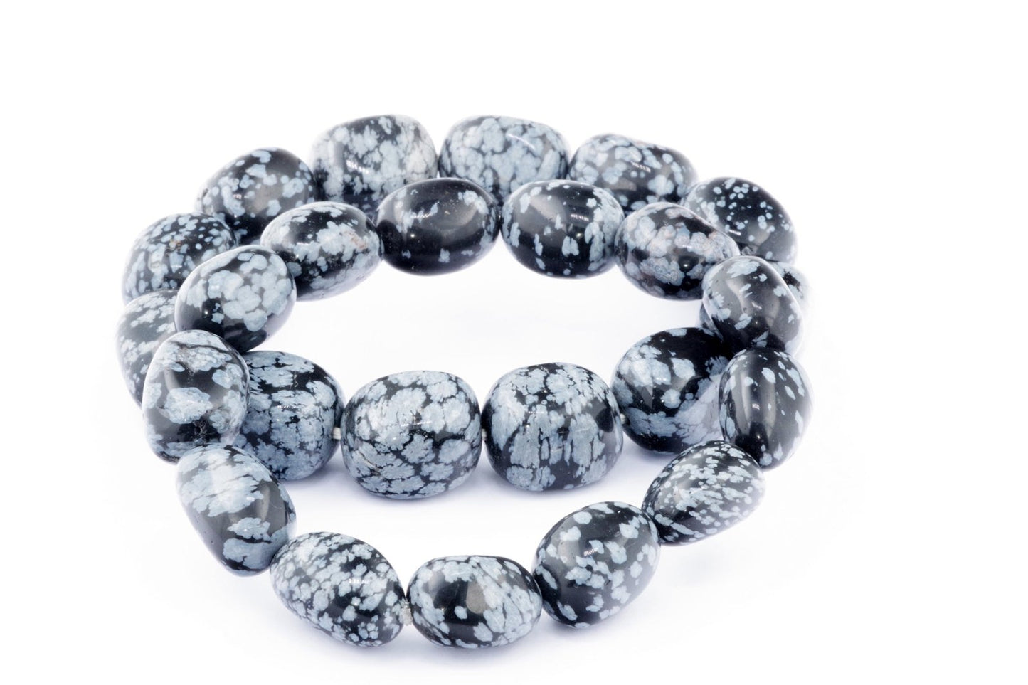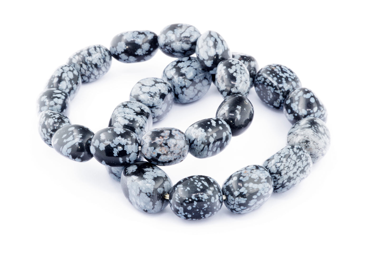 Відкрийте для себе стильний та містичний аксесуар, який вирізняється насиченими чорними кольорами з білими, що нагадують сніг, включеннями. Виготовлений із необроблених каменів снігового обсидіану природної форми, цей браслет є чудовим вибором для тих, хто цінує потужні енергії, захист та любить виразні, але витончені аксесуари.