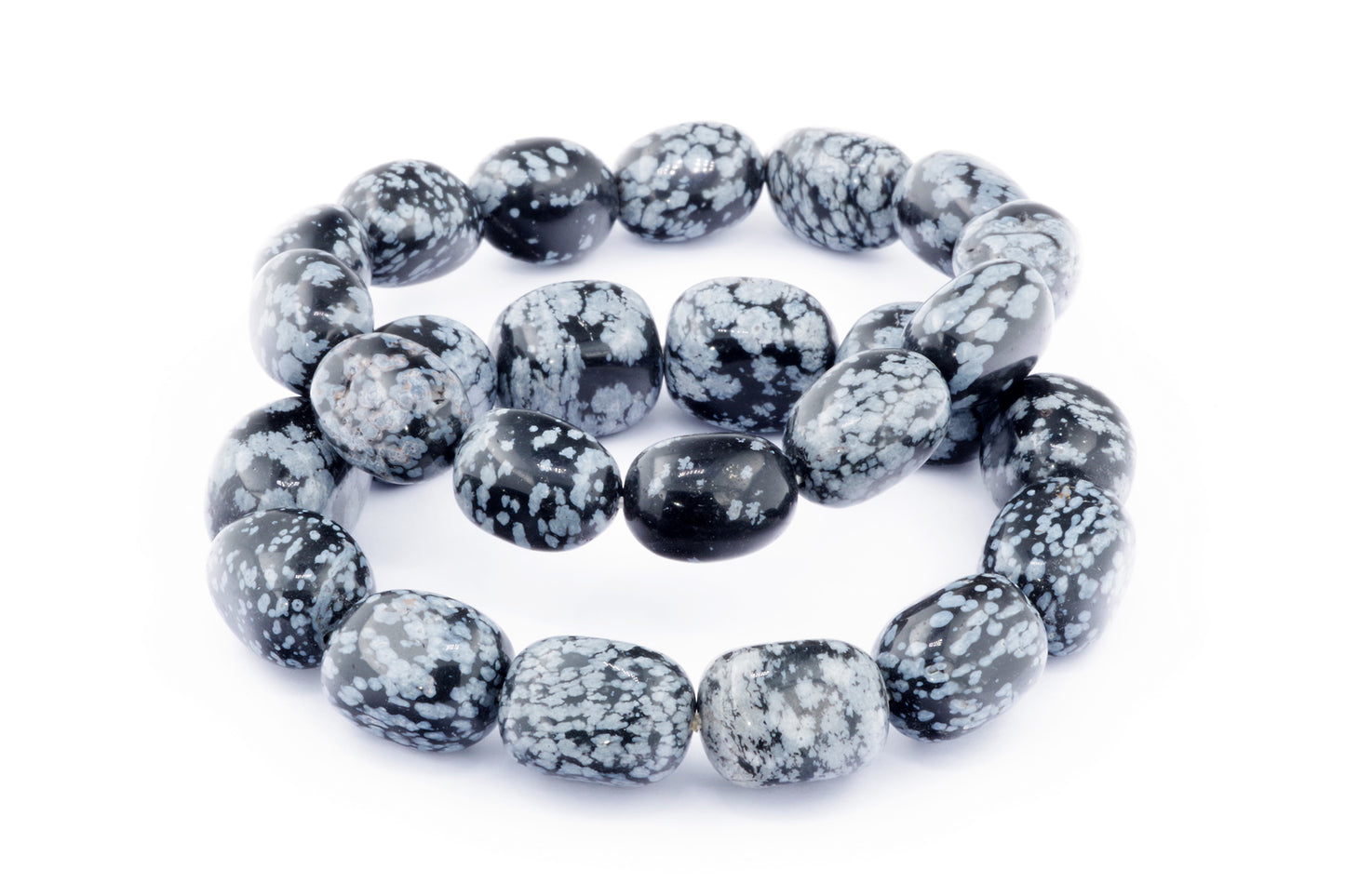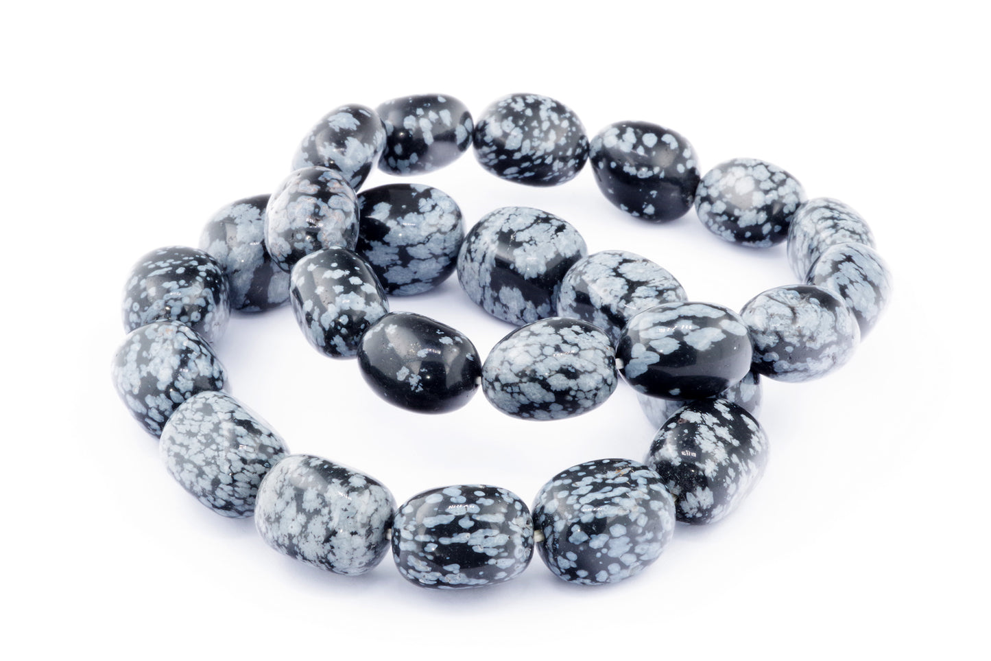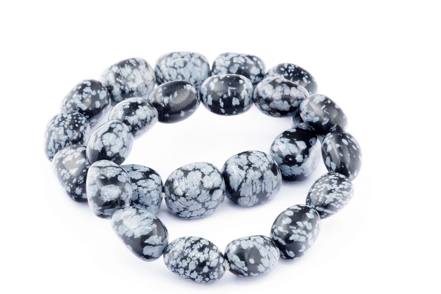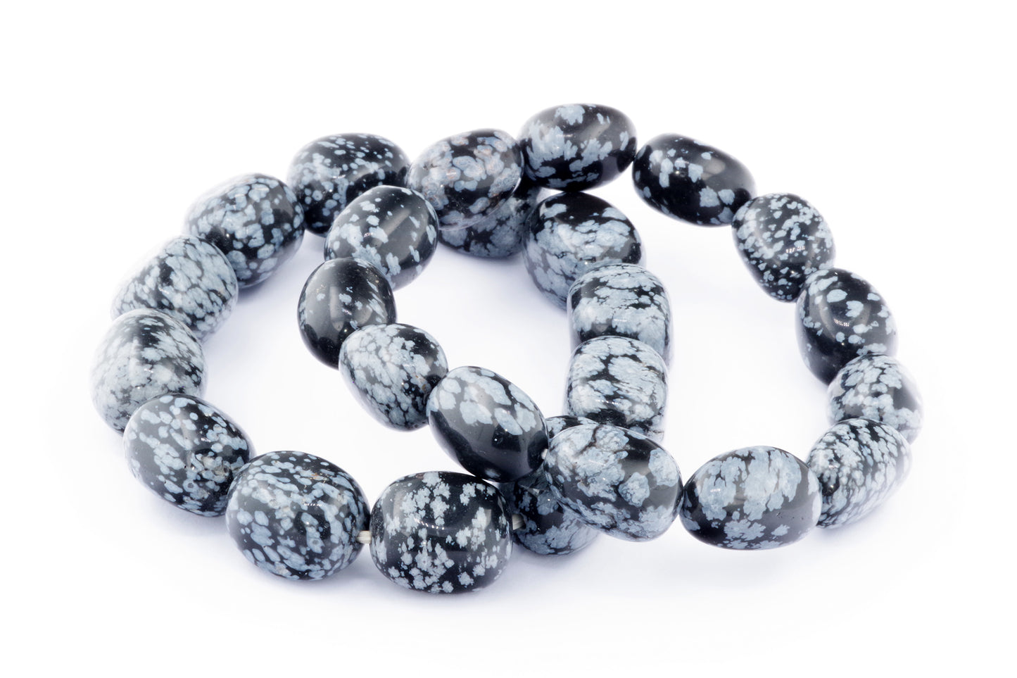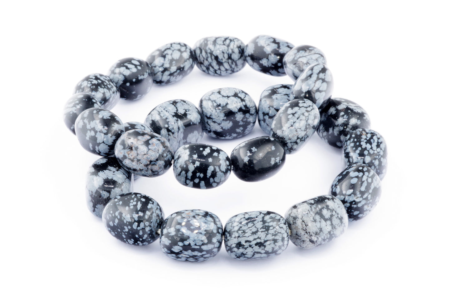 Відкрийте для себе стильний та містичний аксесуар, який вирізняється насиченими чорними кольорами з білими, що нагадують сніг, включеннями. Виготовлений із необроблених каменів снігового обсидіану природної форми, цей браслет є чудовим вибором для тих, хто цінує потужні енергії, захист та любить виразні, але витончені аксесуари.