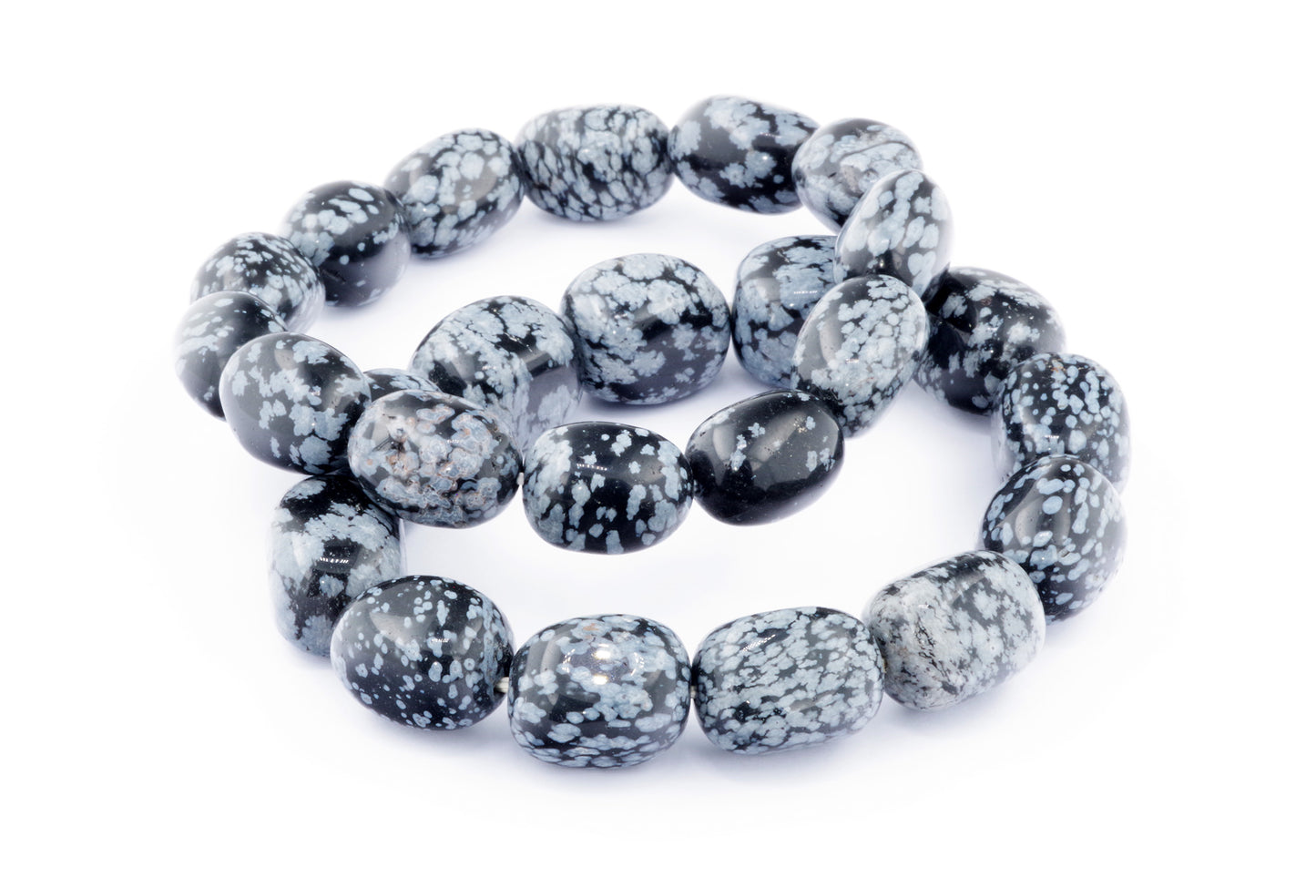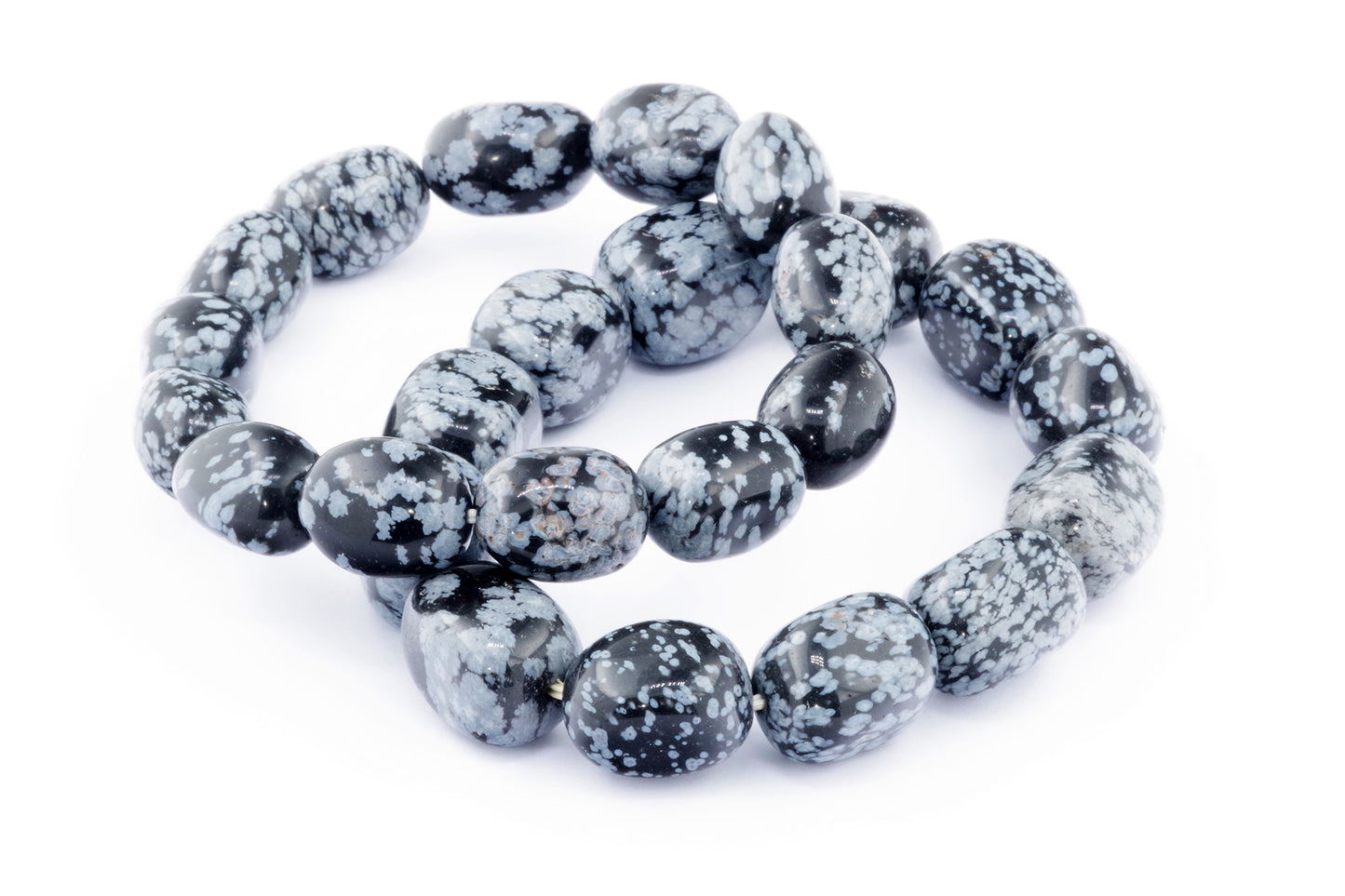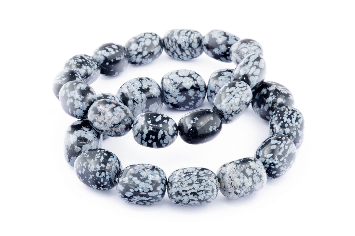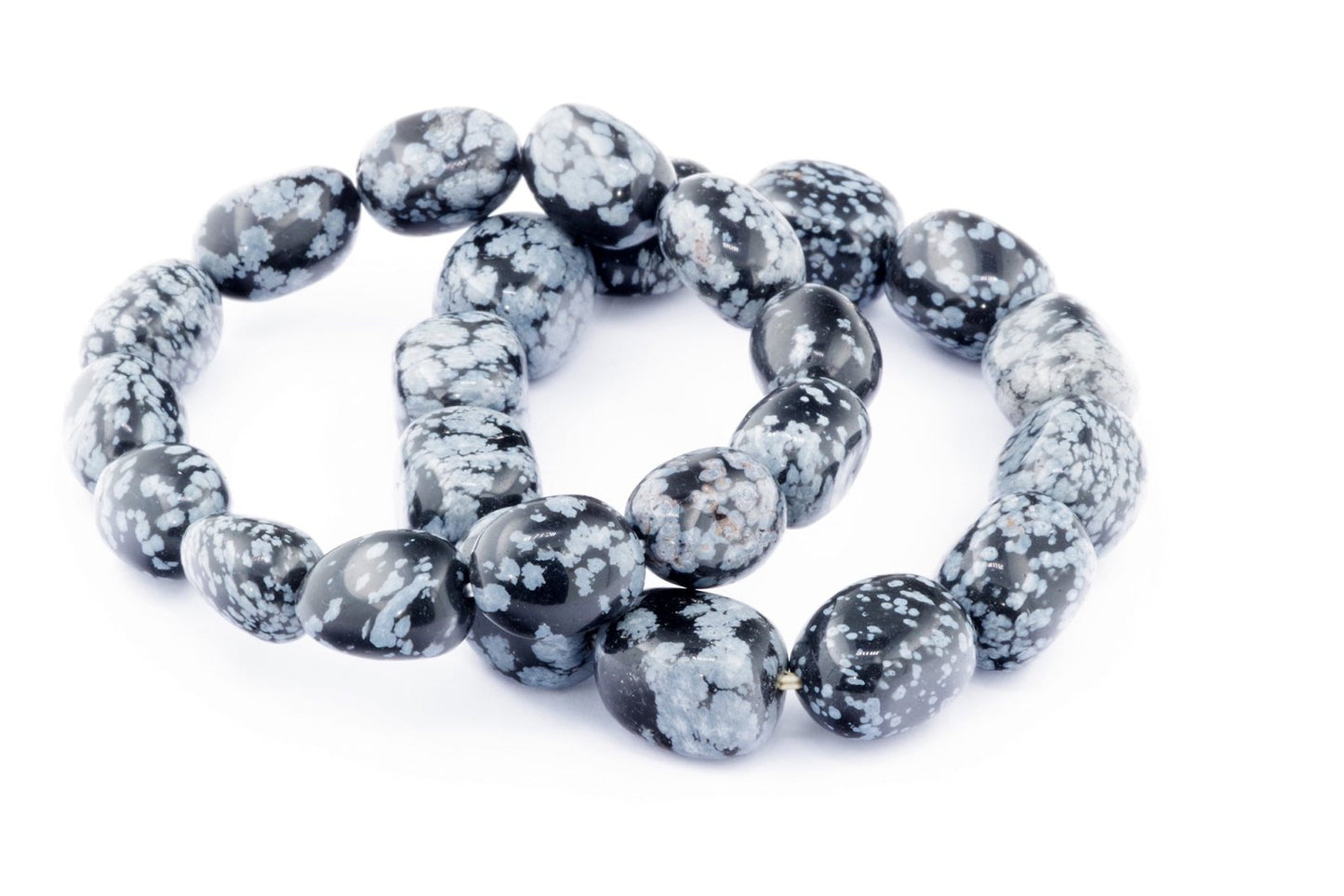 Відкрийте для себе стильний та містичний аксесуар, який вирізняється насиченими чорними кольорами з білими, що нагадують сніг, включеннями. Виготовлений із необроблених каменів снігового обсидіану природної форми, цей браслет є чудовим вибором для тих, хто цінує потужні енергії, захист та любить виразні, але витончені аксесуари.