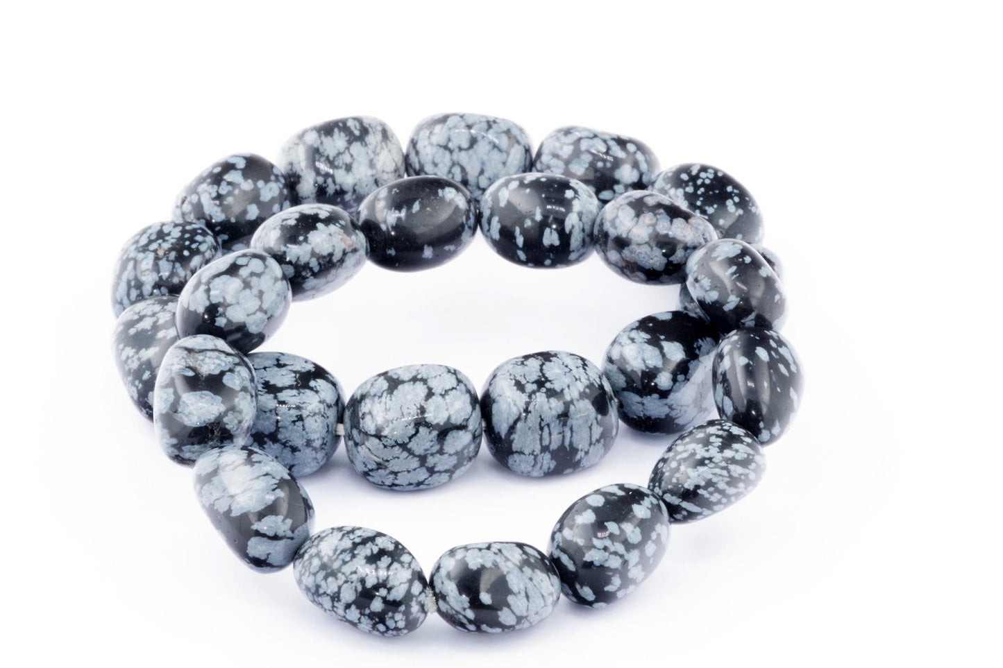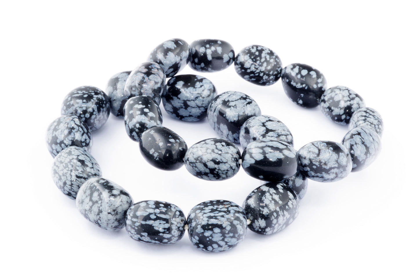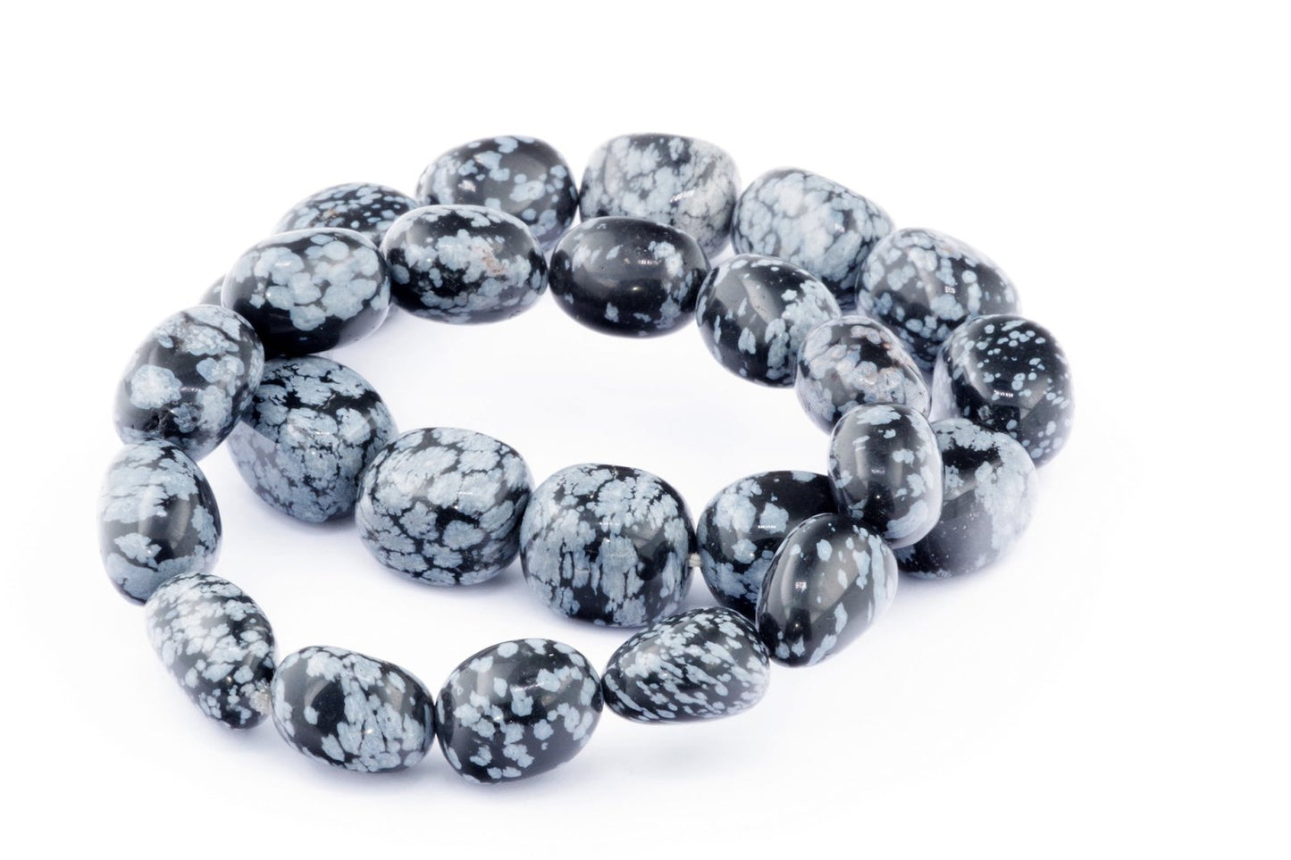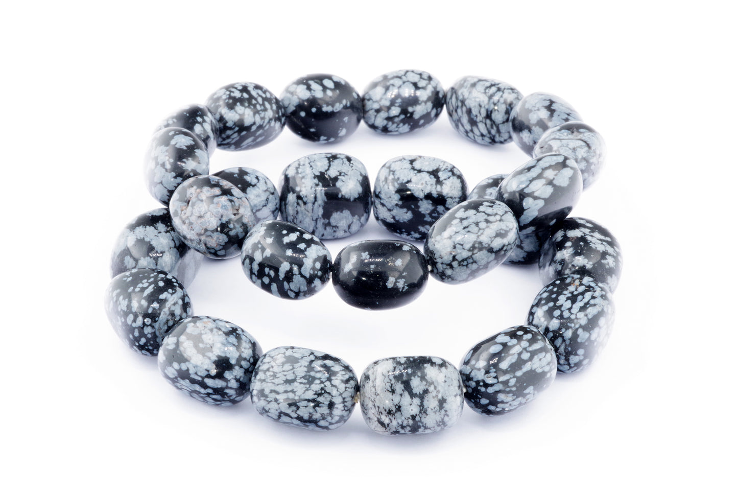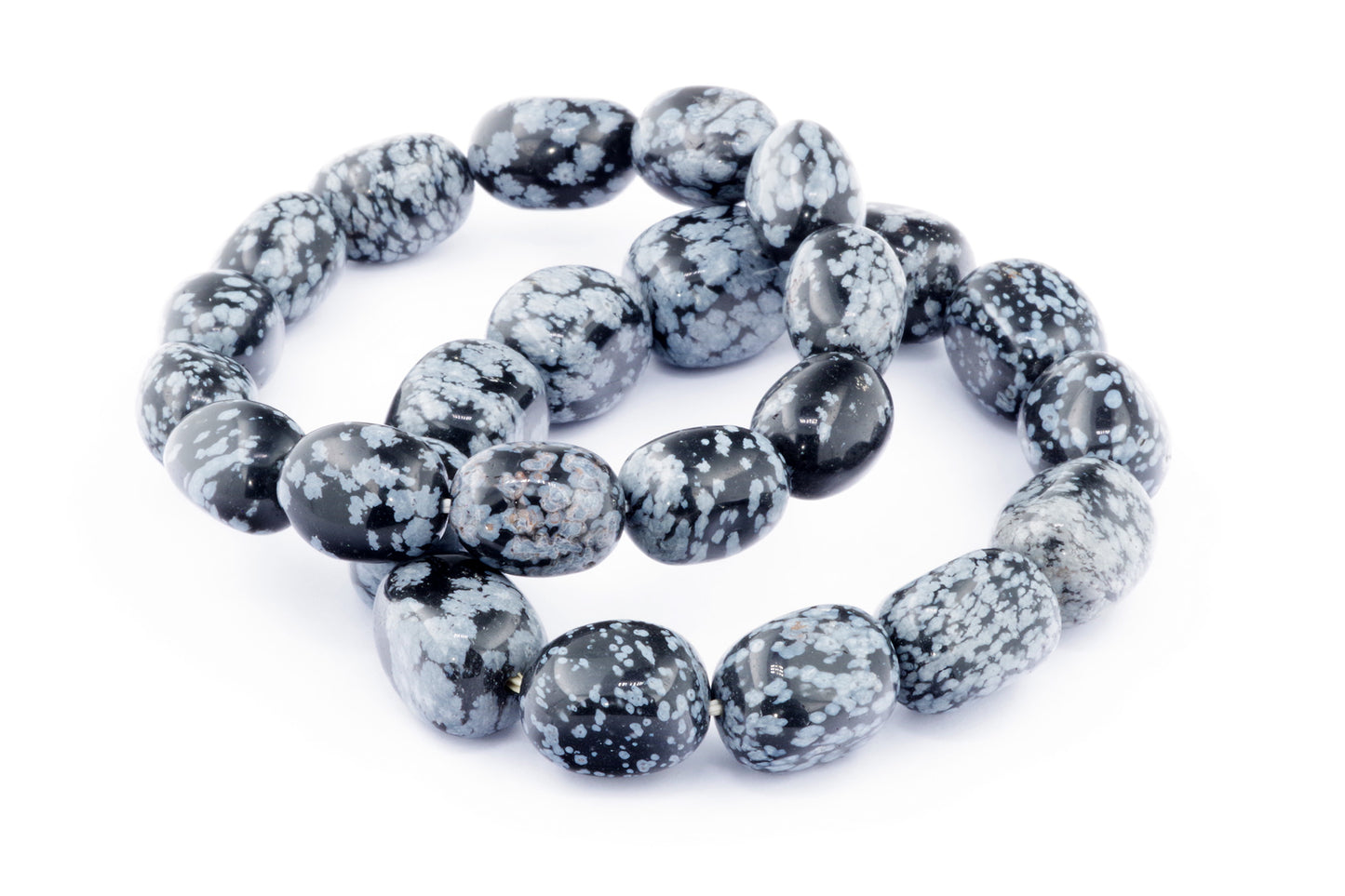 Відкрийте для себе стильний та містичний аксесуар, який вирізняється насиченими чорними кольорами з білими, що нагадують сніг, включеннями. Виготовлений із необроблених каменів снігового обсидіану природної форми, цей браслет є чудовим вибором для тих, хто цінує потужні енергії, захист та любить виразні, але витончені аксесуари.