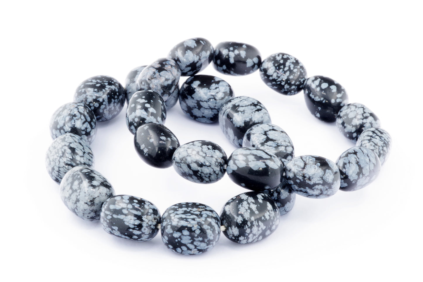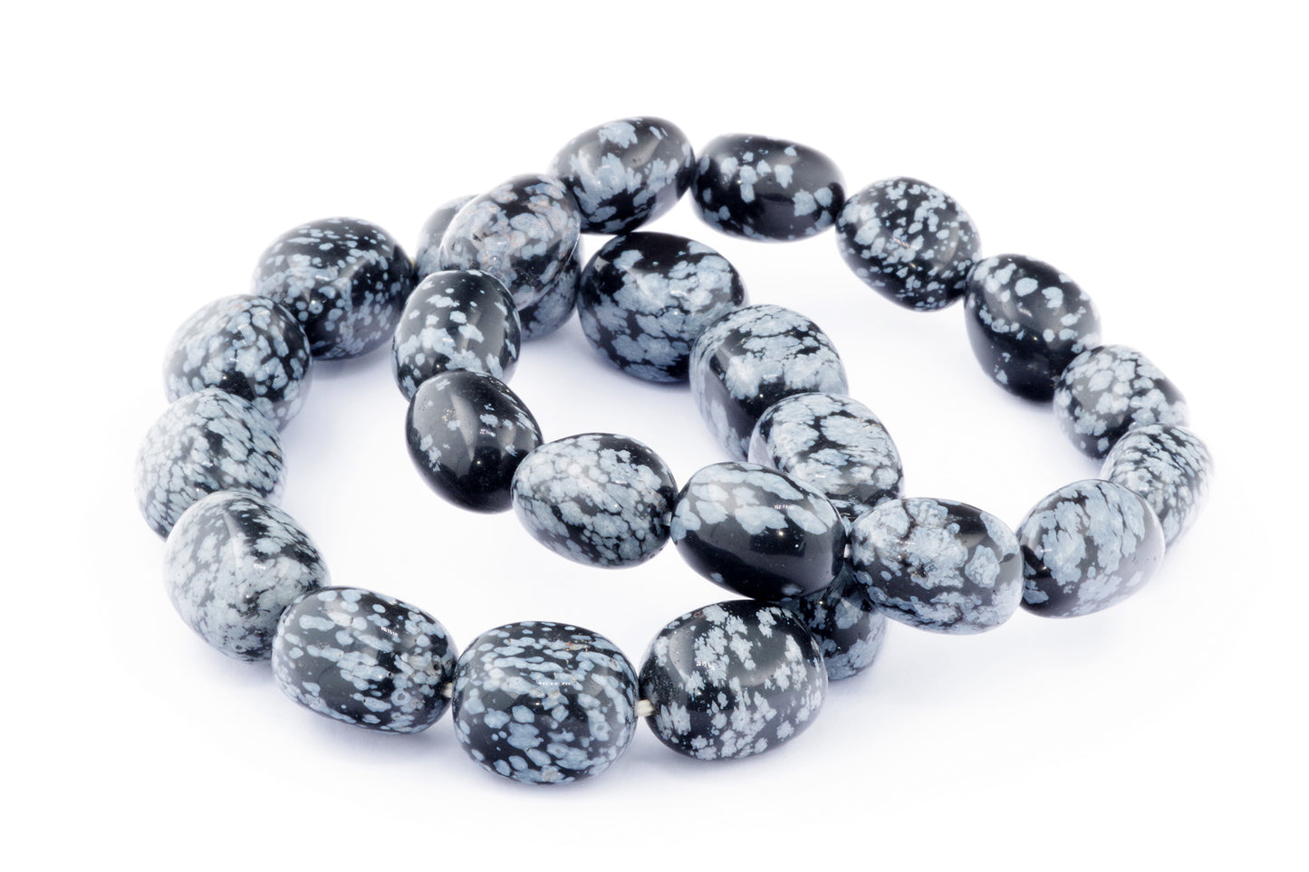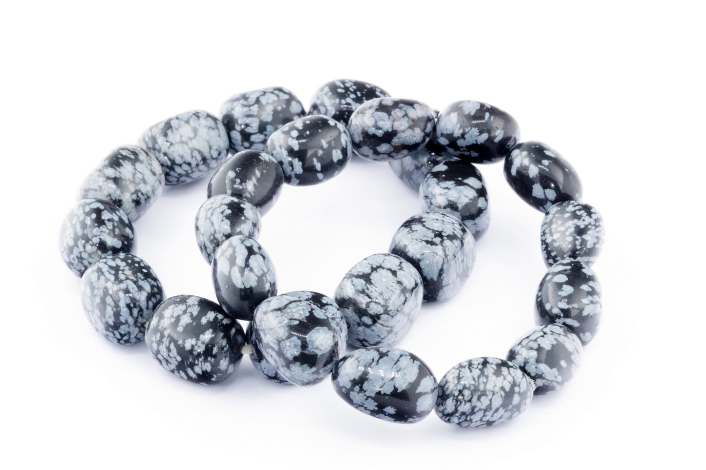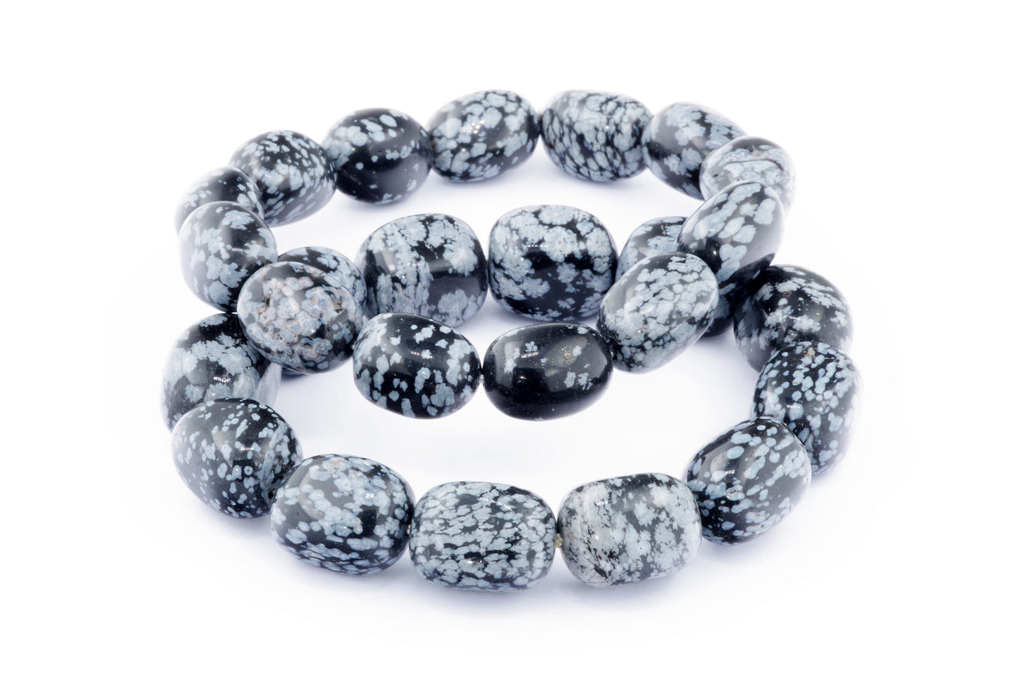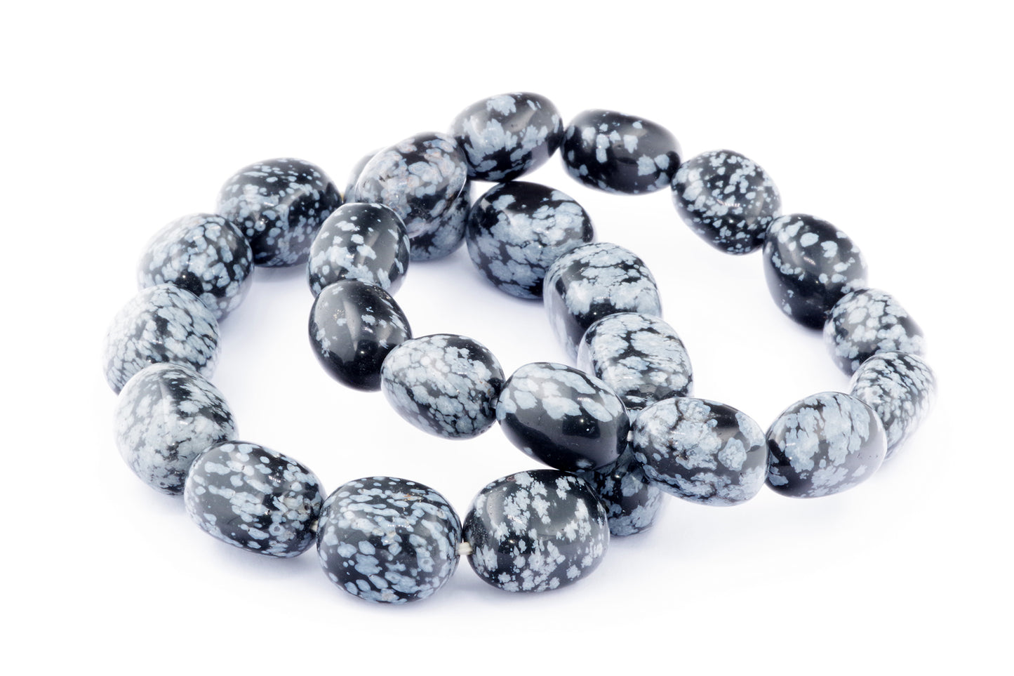 Відкрийте для себе стильний та містичний аксесуар, який вирізняється насиченими чорними кольорами з білими, що нагадують сніг, включеннями. Виготовлений із необроблених каменів снігового обсидіану природної форми, цей браслет є чудовим вибором для тих, хто цінує потужні енергії, захист та любить виразні, але витончені аксесуари.
