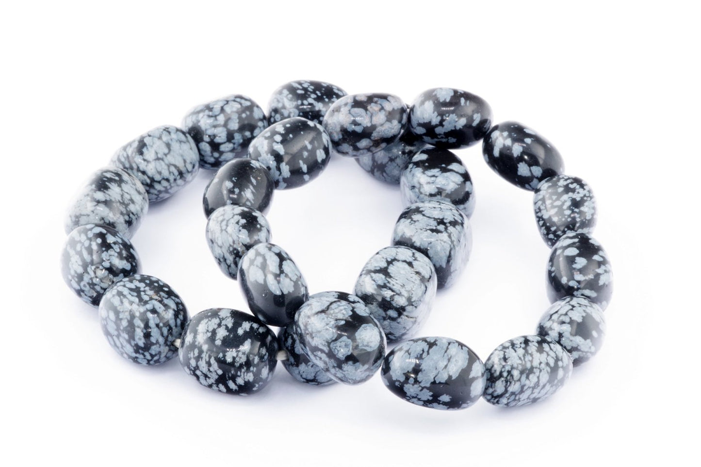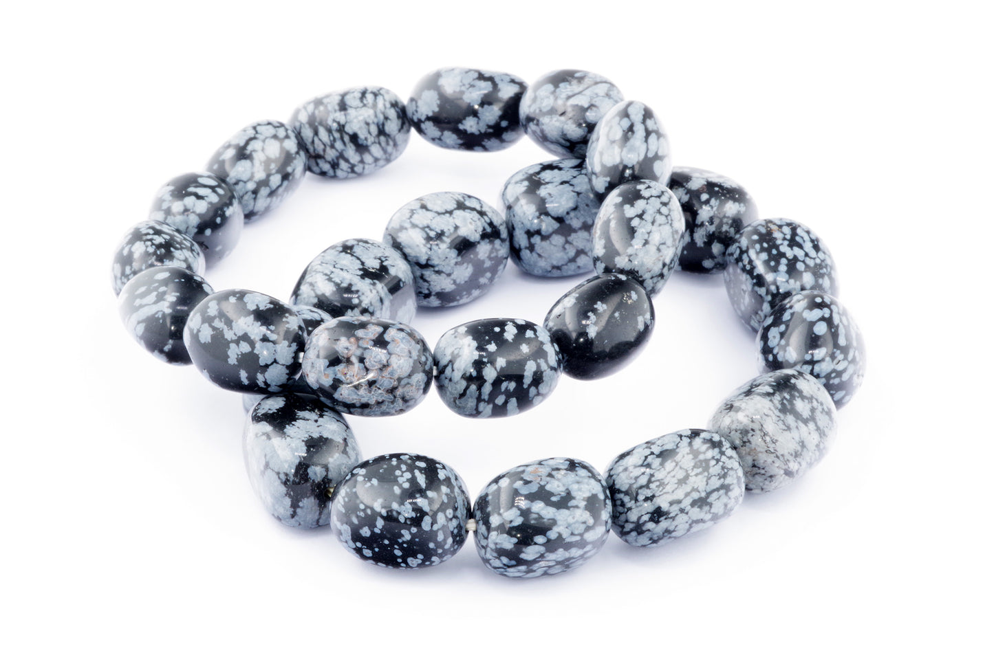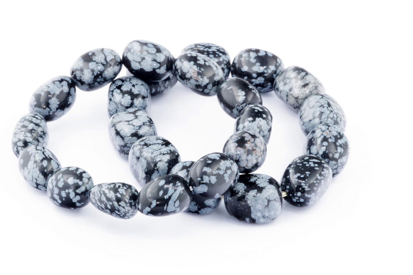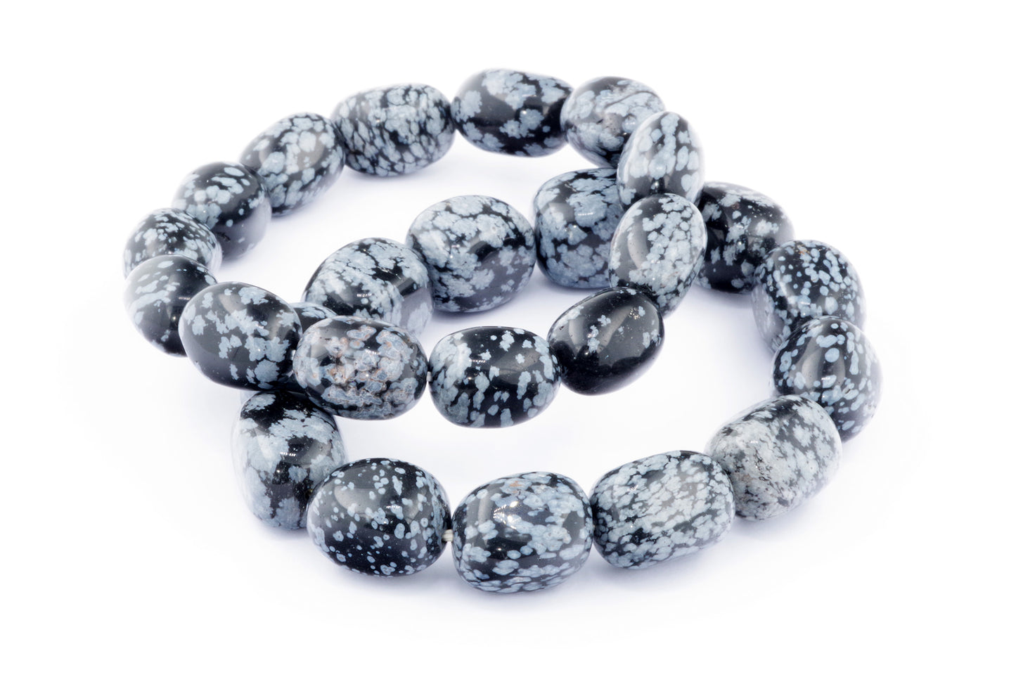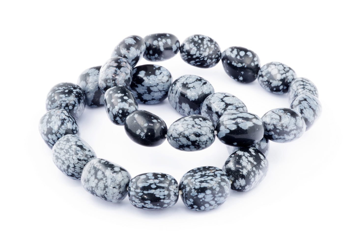Відкрийте для себе стильний та містичний аксесуар, який вирізняється насиченими чорними кольорами з білими, що нагадують сніг, включеннями. Виготовлений із необроблених каменів снігового обсидіану природної форми, цей браслет є чудовим вибором для тих, хто цінує потужні енергії, захист та любить виразні, але витончені аксесуари.