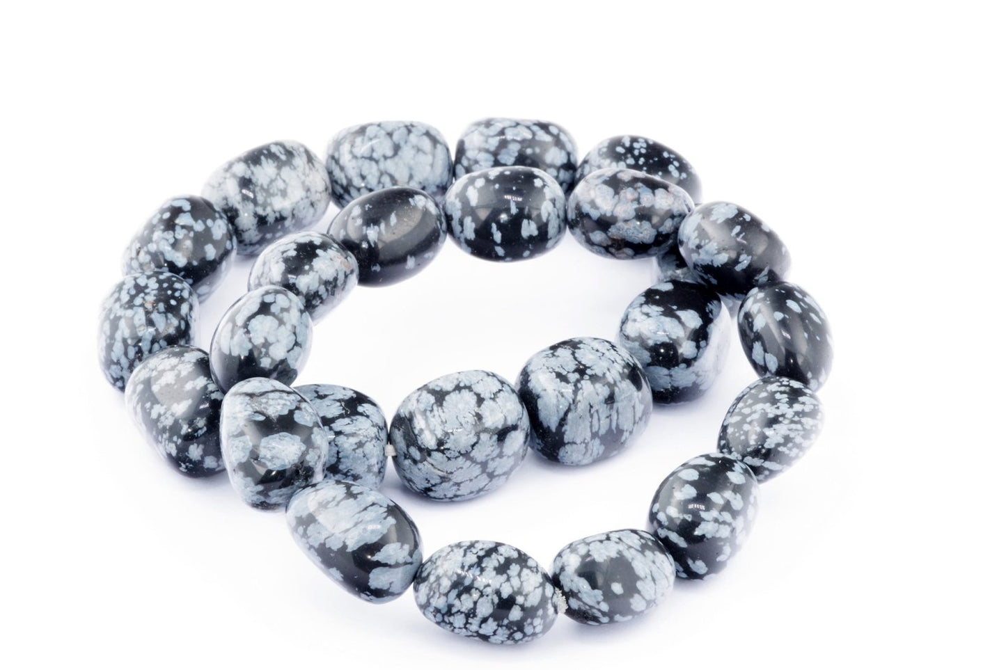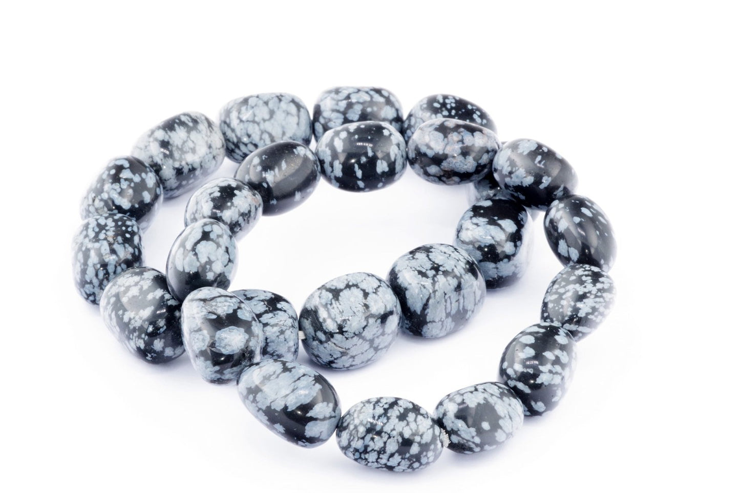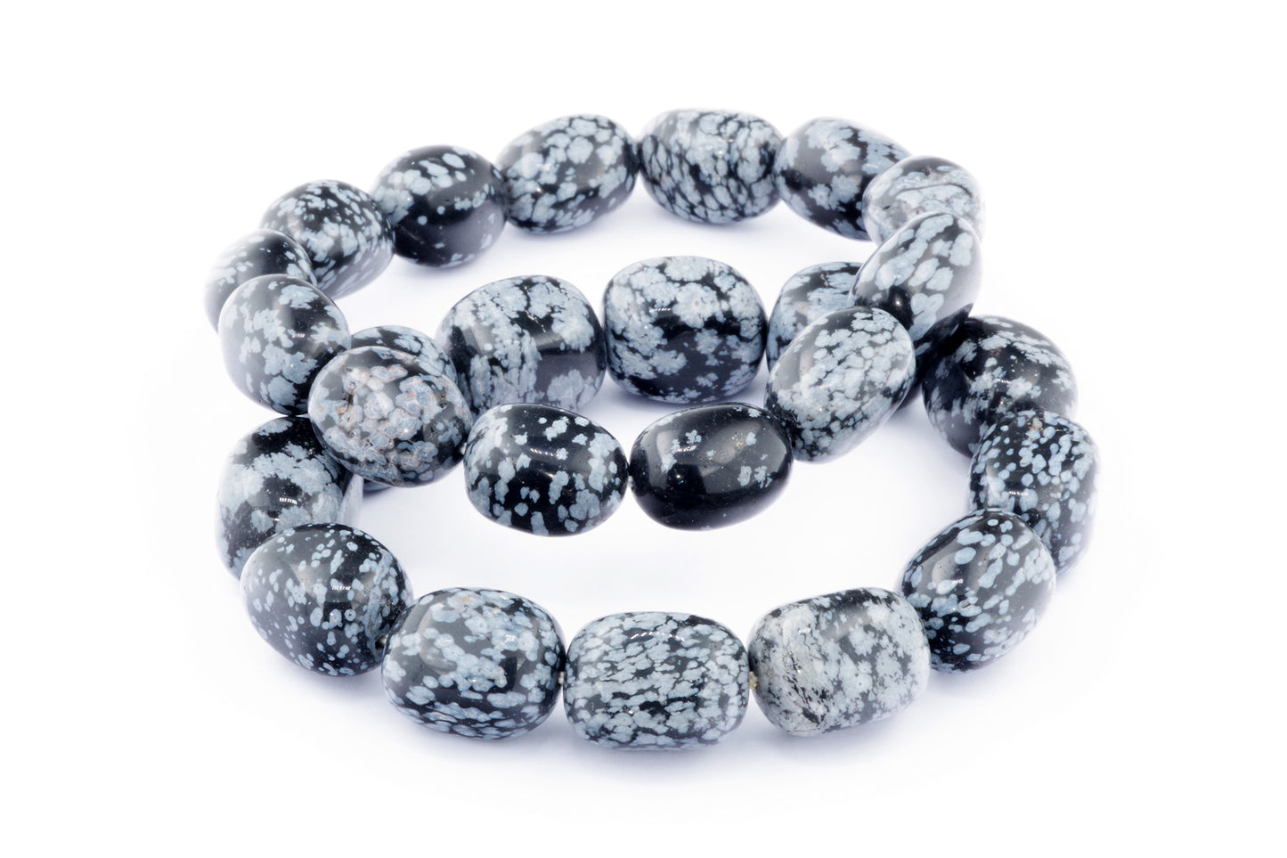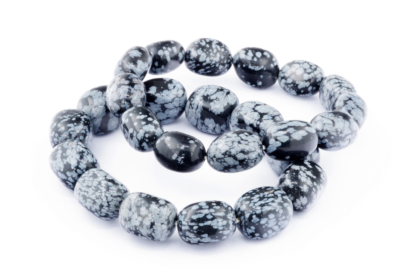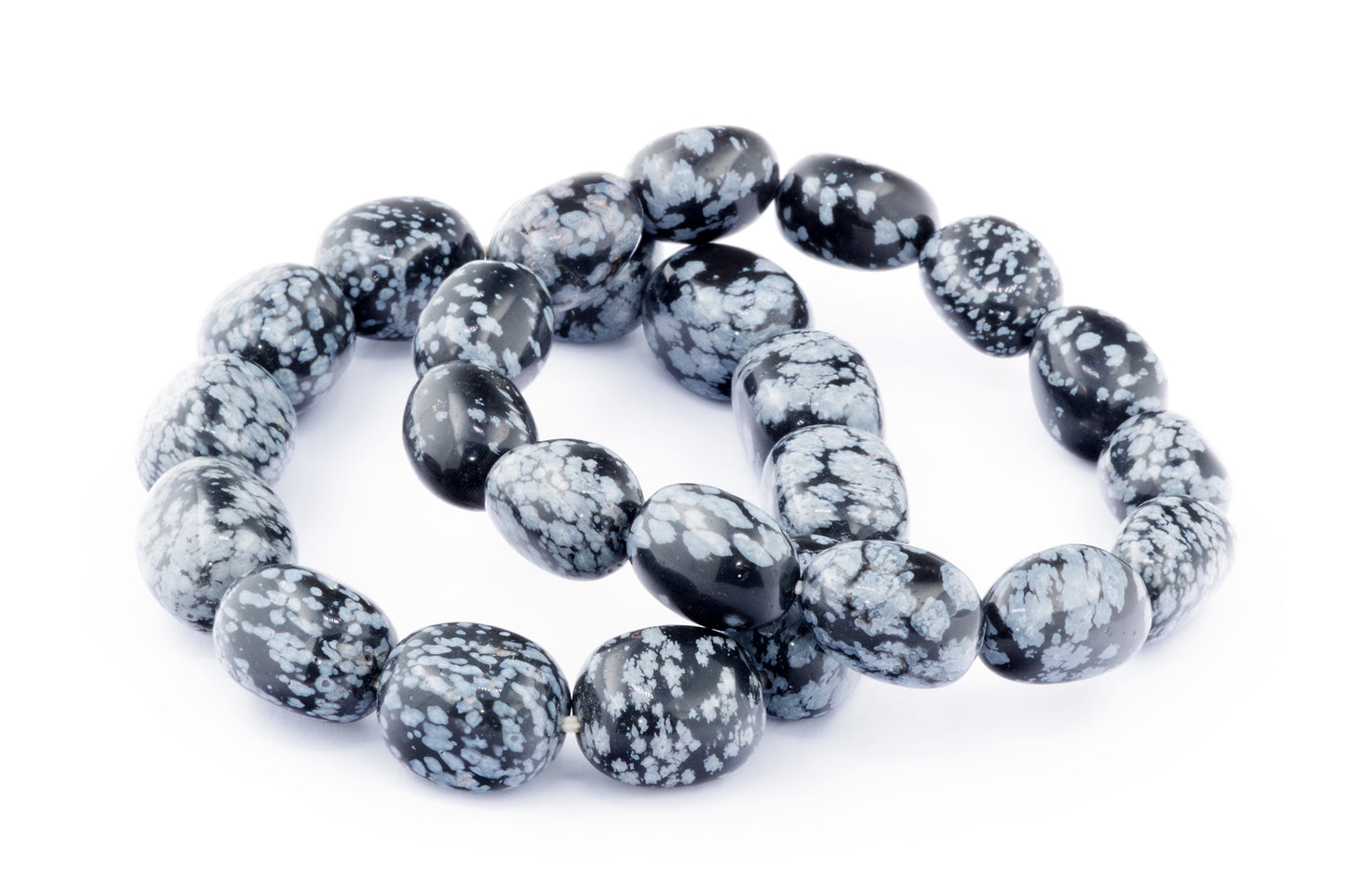 Відкрийте для себе стильний та містичний аксесуар, який вирізняється насиченими чорними кольорами з білими, що нагадують сніг, включеннями. Виготовлений із необроблених каменів снігового обсидіану природної форми, цей браслет є чудовим вибором для тих, хто цінує потужні енергії, захист та любить виразні, але витончені аксесуари.