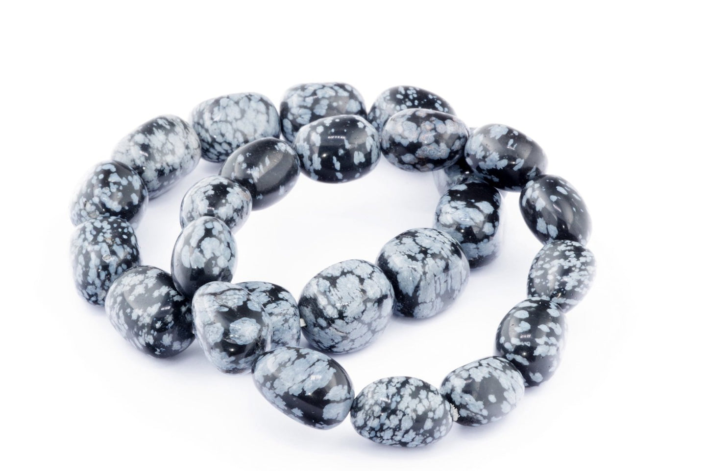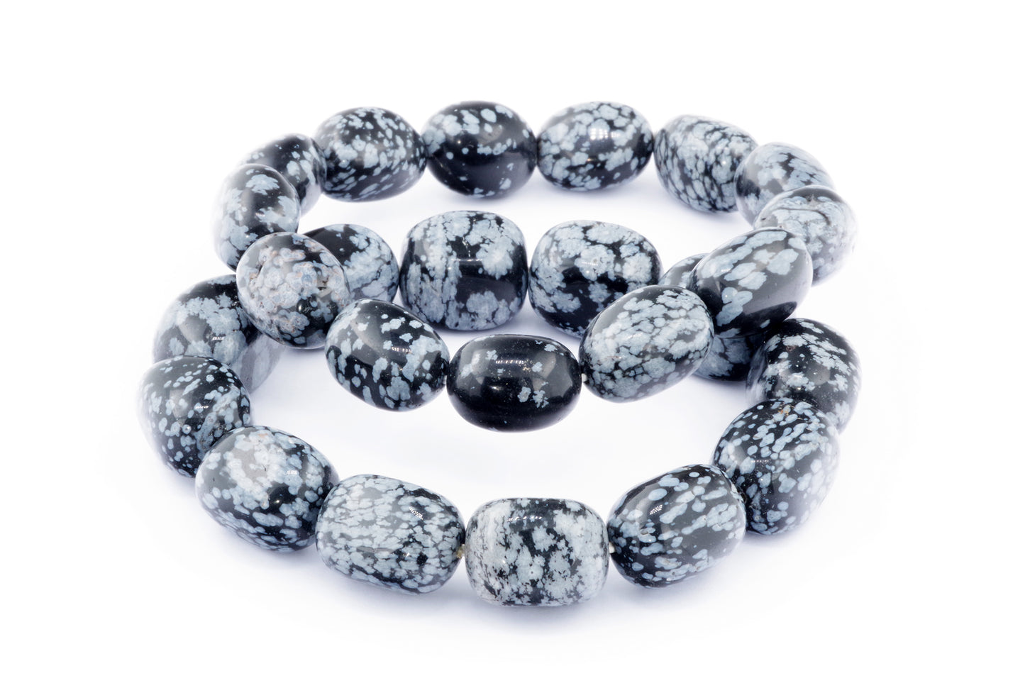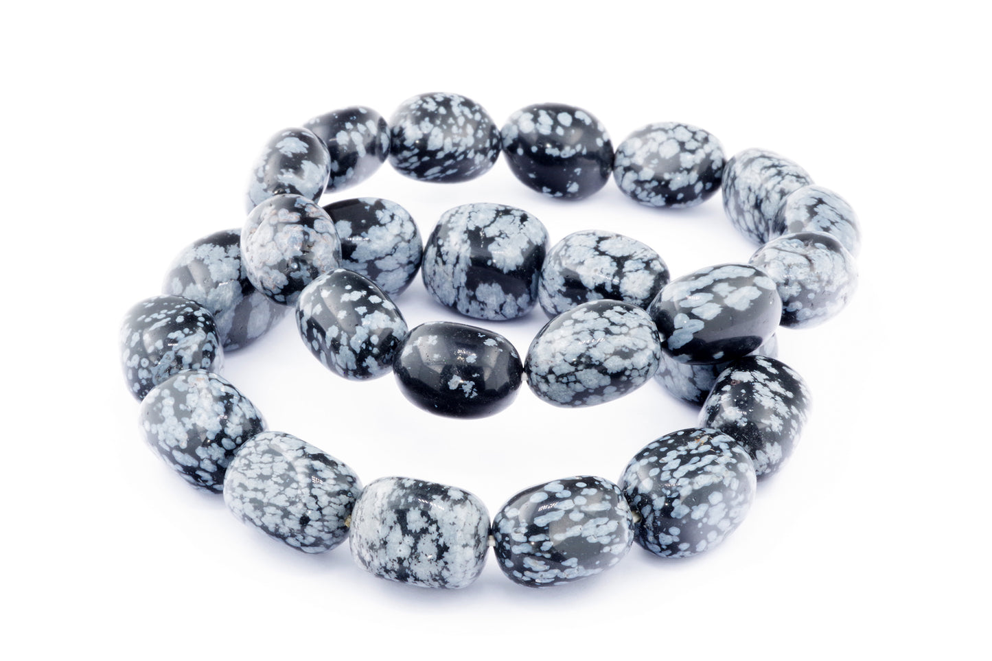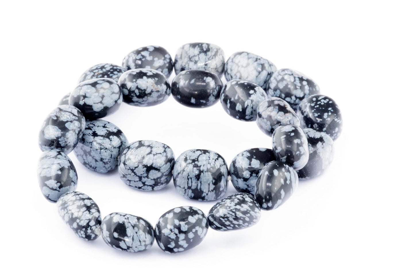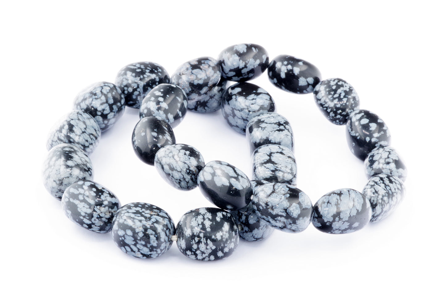 Відкрийте для себе стильний та містичний аксесуар, який вирізняється насиченими чорними кольорами з білими, що нагадують сніг, включеннями. Виготовлений із необроблених каменів снігового обсидіану природної форми, цей браслет є чудовим вибором для тих, хто цінує потужні енергії, захист та любить виразні, але витончені аксесуари.