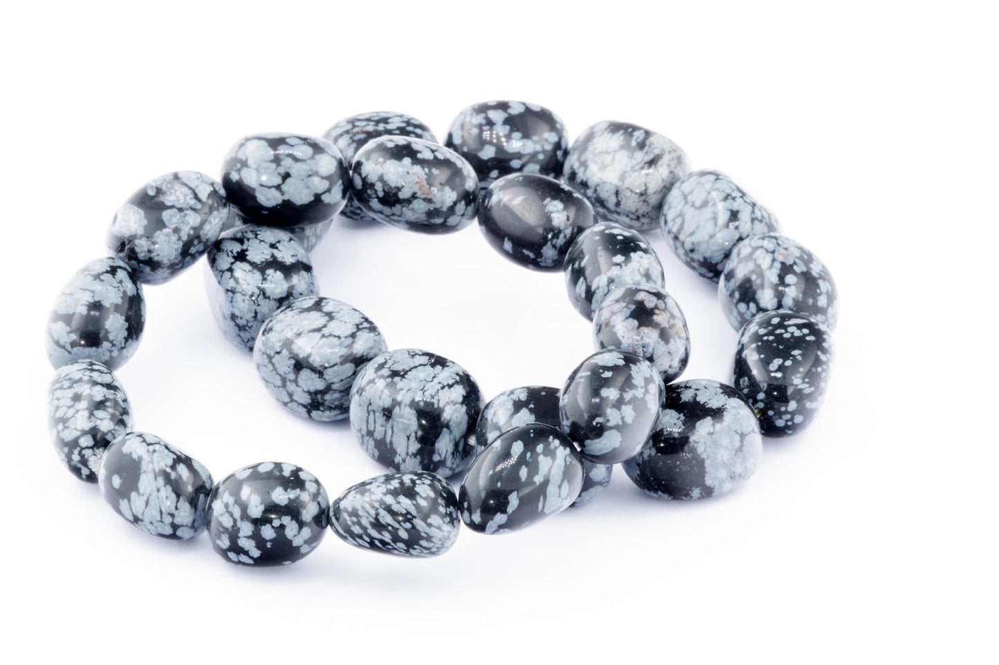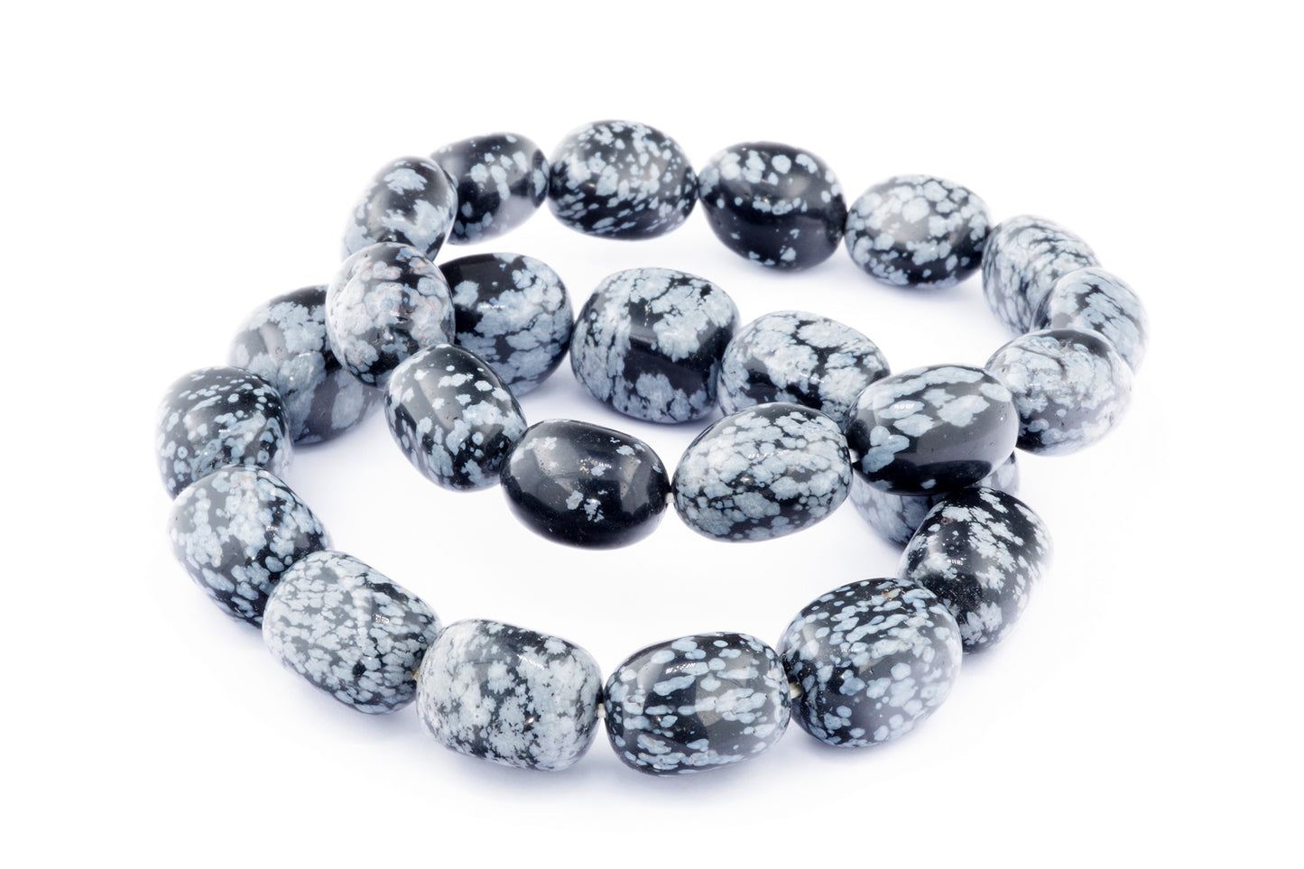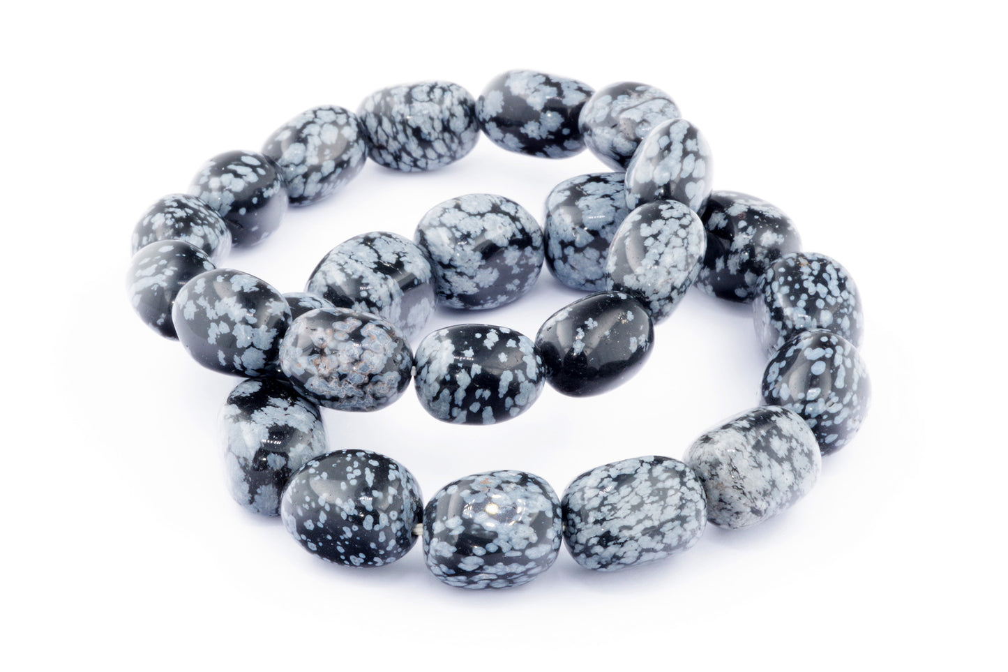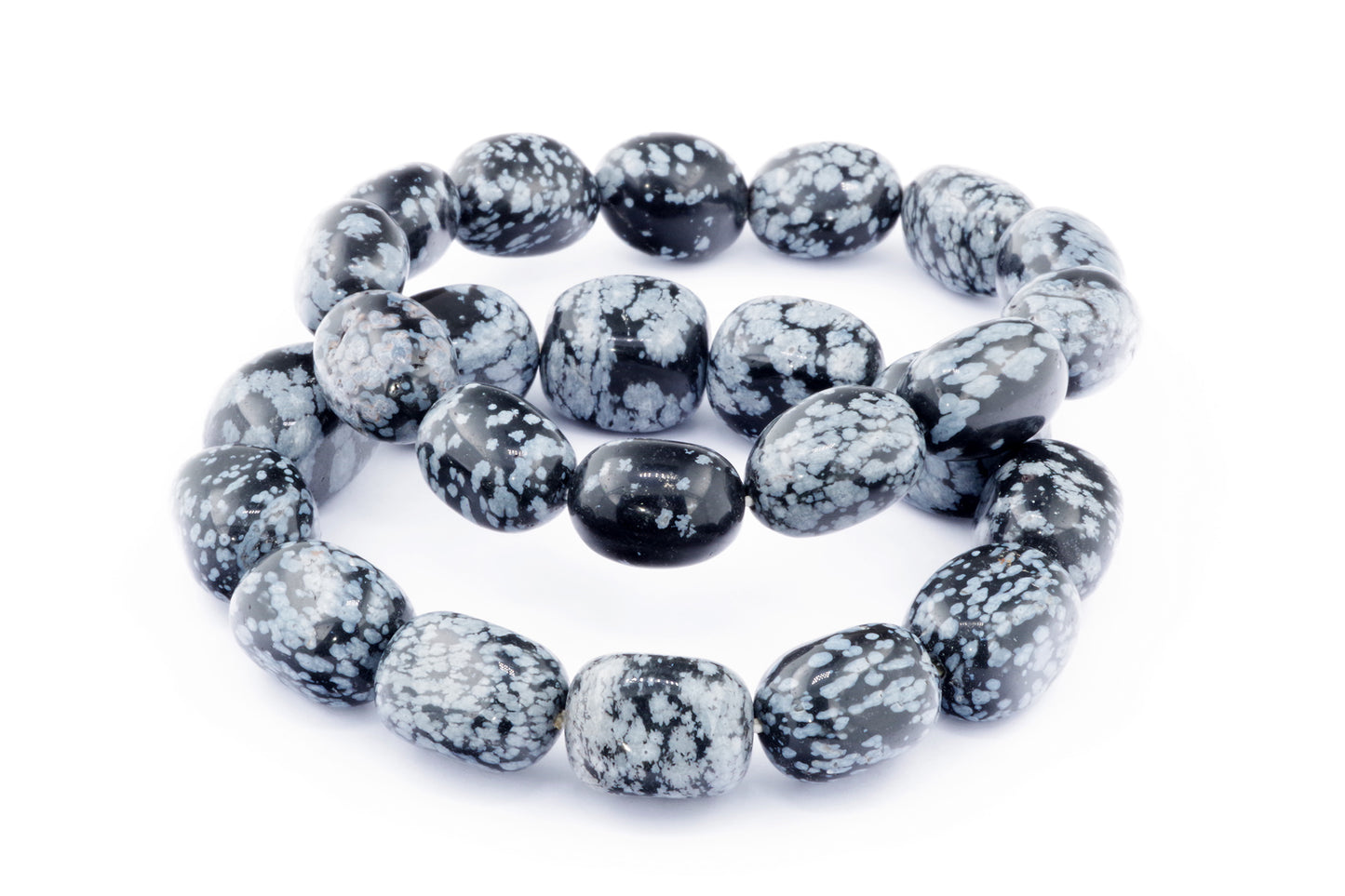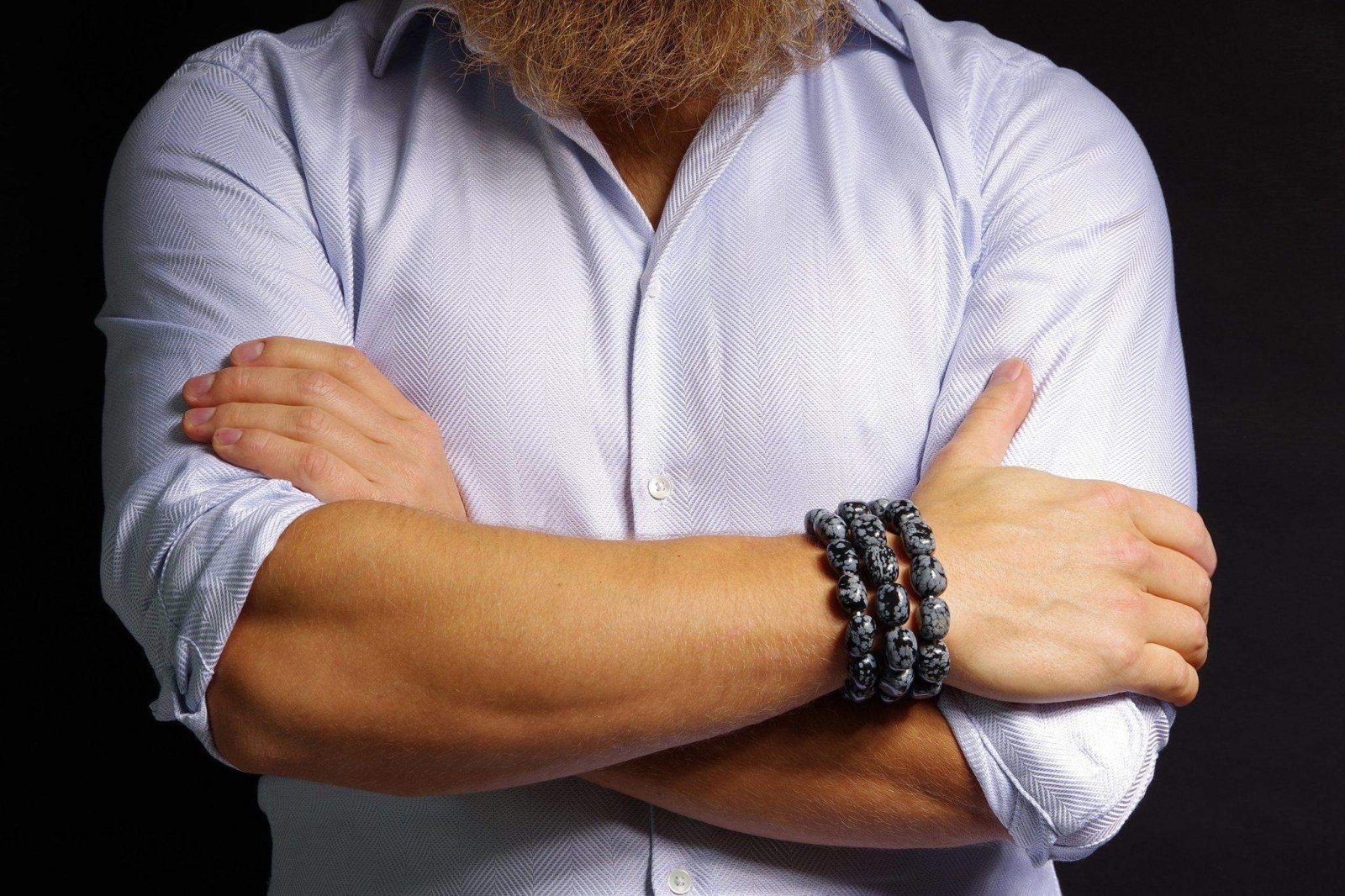 Відкрийте для себе стильний та містичний аксесуар, який вирізняється насиченими чорними кольорами з білими, що нагадують сніг, включеннями. Виготовлений із необроблених каменів снігового обсидіану природної форми, цей браслет є чудовим вибором для тих, хто цінує потужні енергії, захист та любить виразні, але витончені аксесуари.