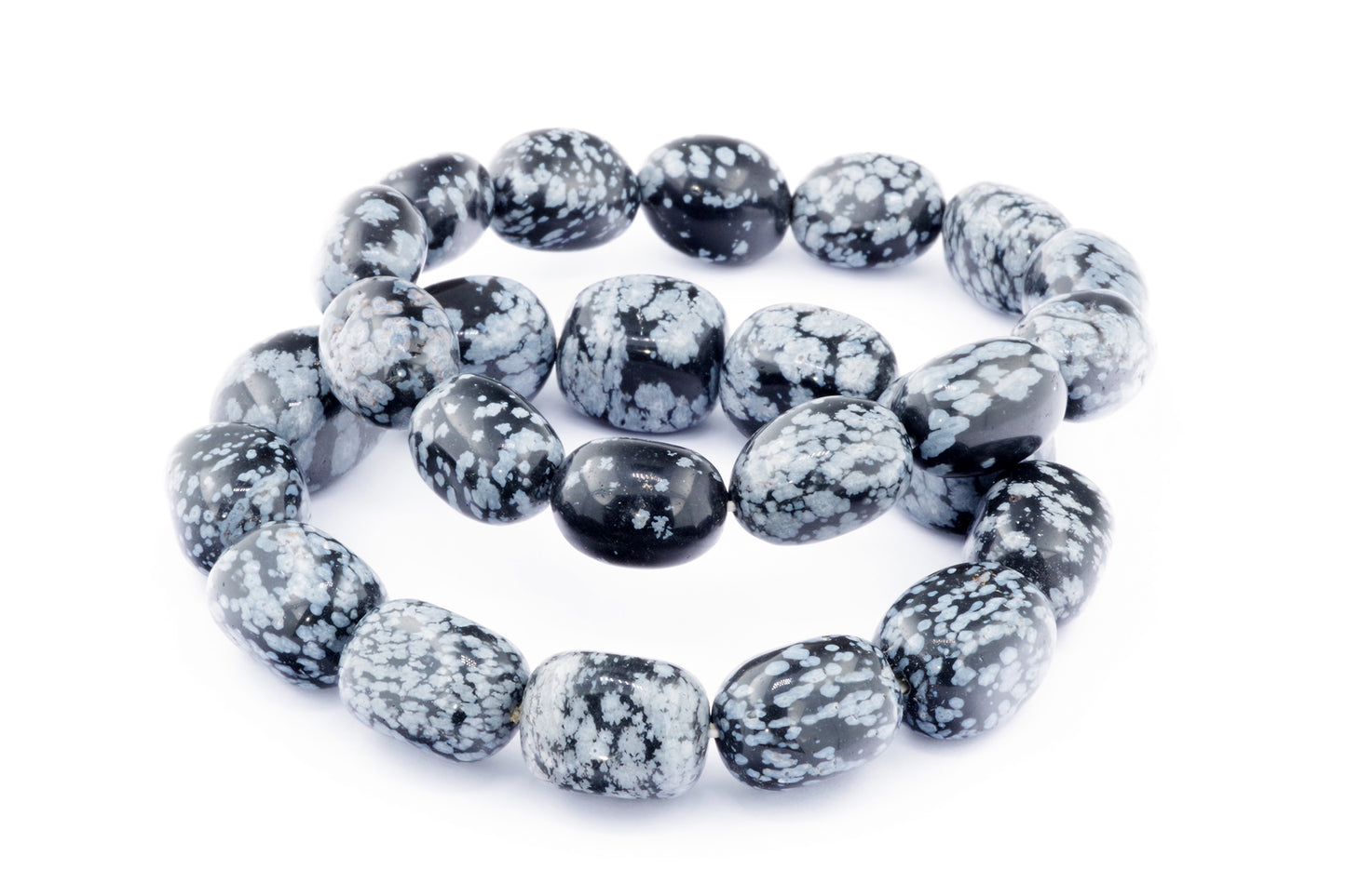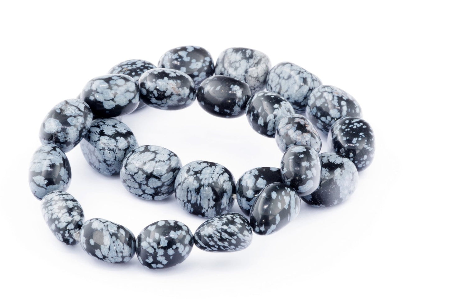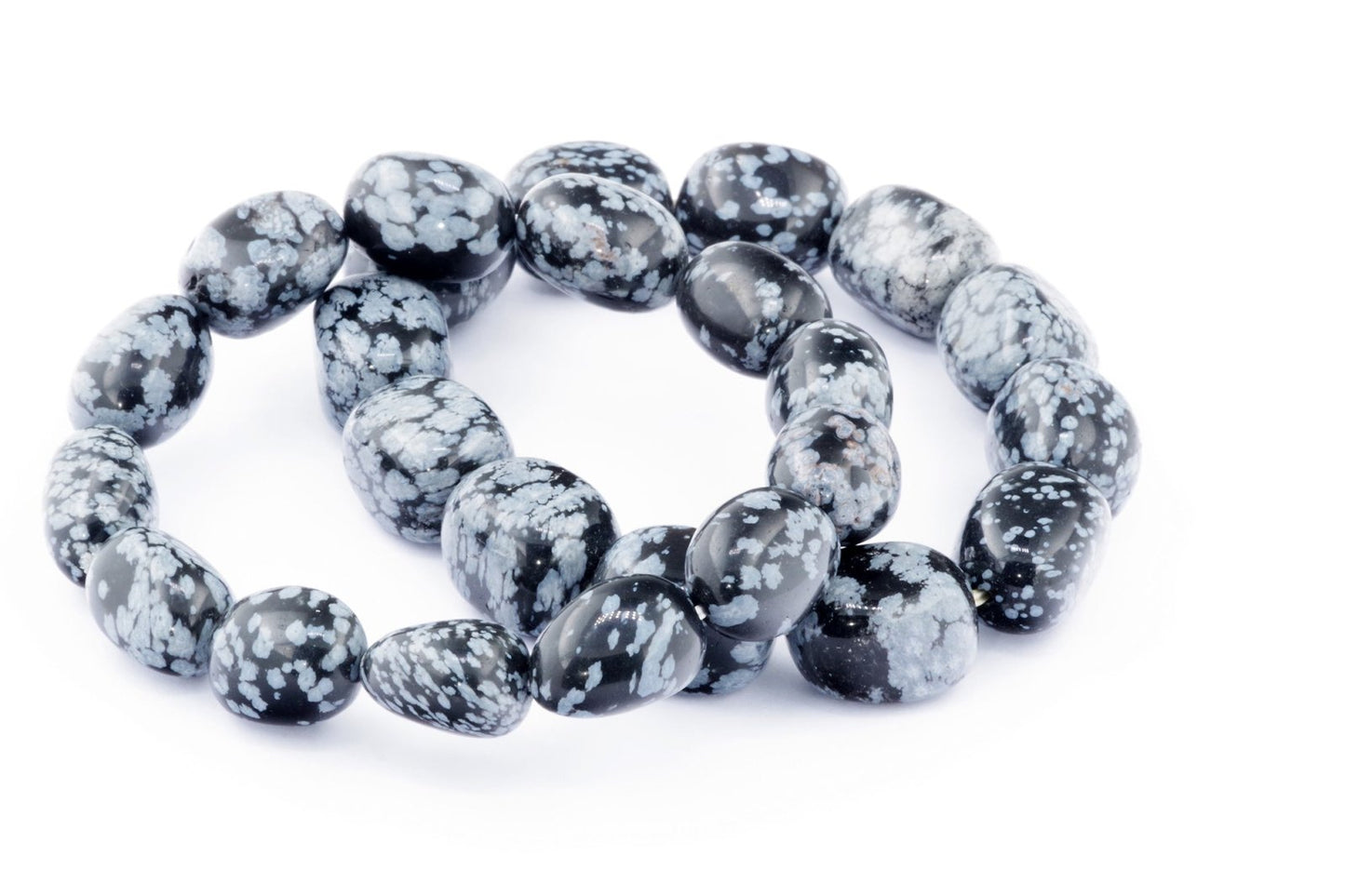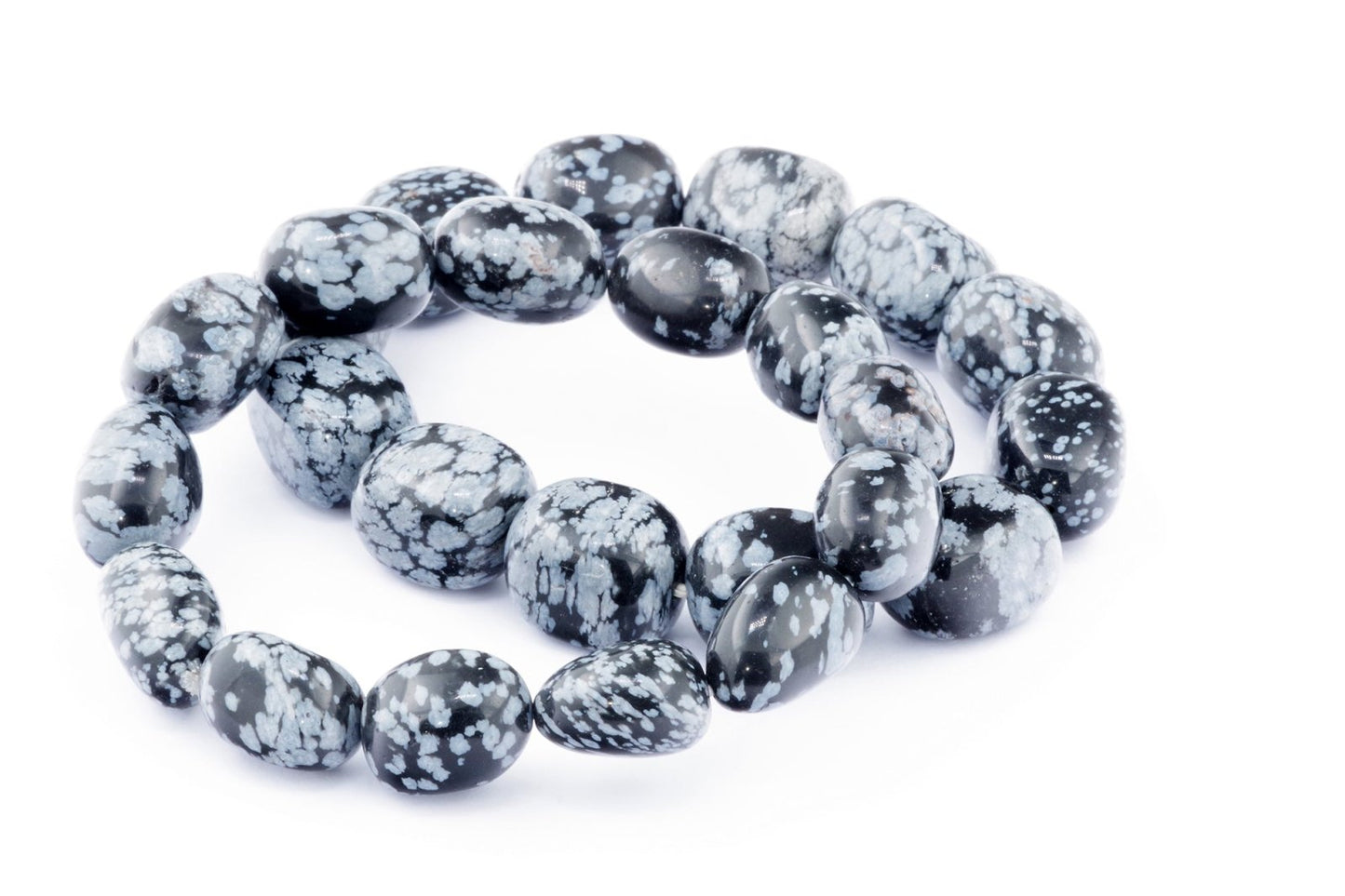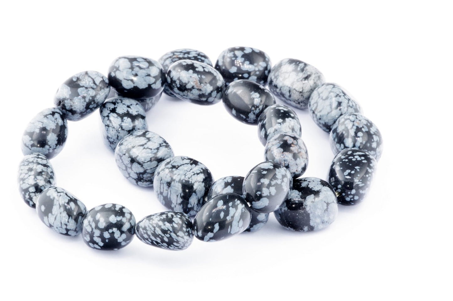 Відкрийте для себе стильний та містичний аксесуар, який вирізняється насиченими чорними кольорами з білими, що нагадують сніг, включеннями. Виготовлений із необроблених каменів снігового обсидіану природної форми, цей браслет є чудовим вибором для тих, хто цінує потужні енергії, захист та любить виразні, але витончені аксесуари.